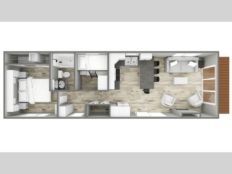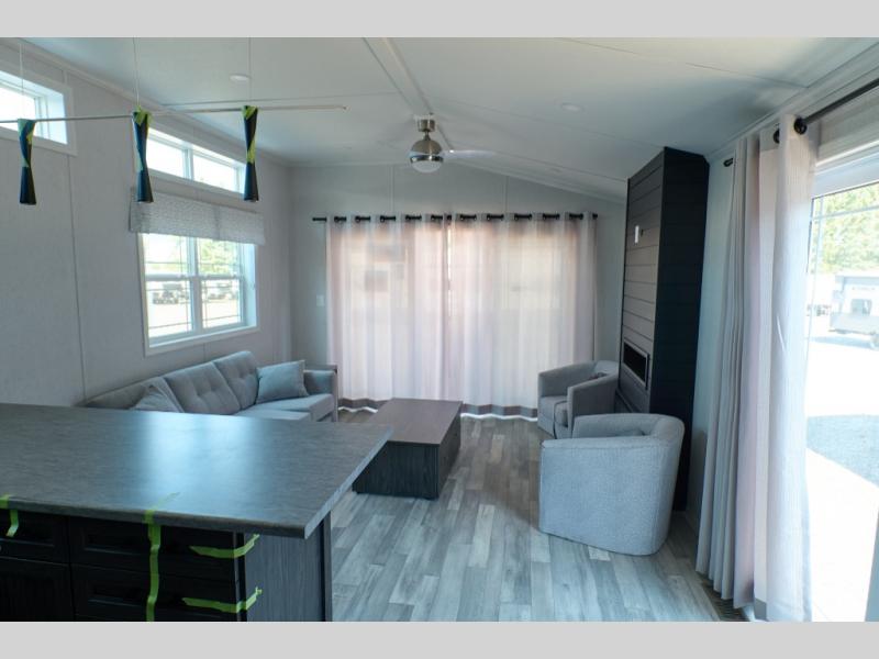 The General Coach Resort Series is a collection of park model homes designed for comfortable, luxurious, and spacious seasonal living. These models blend classic park model construction with modern elegance, premium finishes, and all the comforts of home. They offer a range of single and double-wide floor plans, and are known for their thoughtful design, functionality, and ability to create a luxurious retreat.