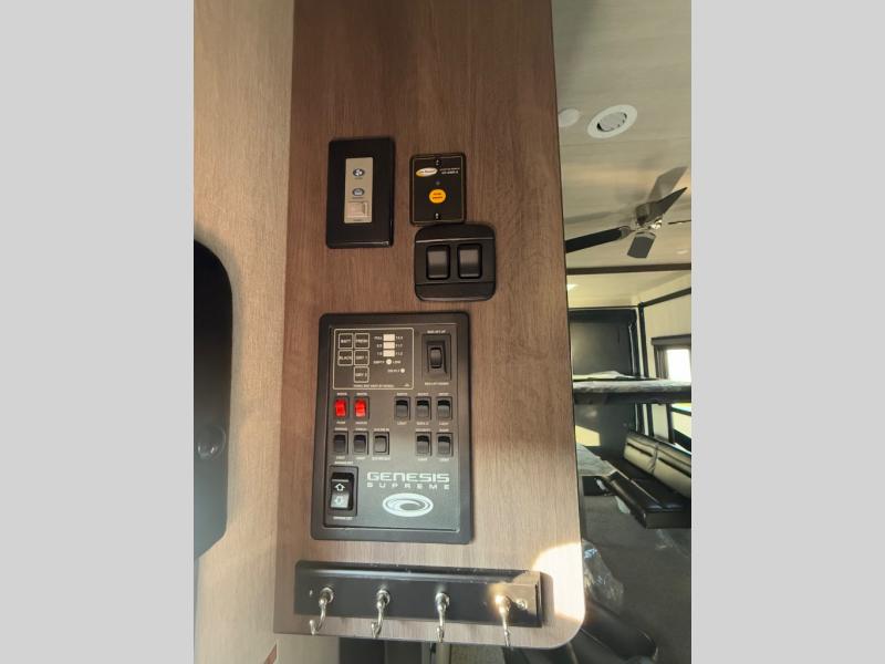 All sizes of off-road toys can fit into one of these Genesis Supreme fifth wheel toy haulers or travel trailer toy haulers! They are made for the outdoor enthusiasts and can handle harsh environments while still providing a luxurious lifestyle. With innovative floorplans built by engineers, you can know you will find what you're looking for in a toy hauler. Start your off-road journey today with your favorite model!