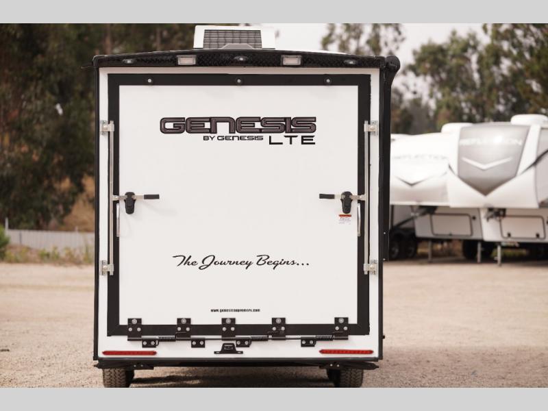 Ramp up your fun camping in this Genesis Supreme LTE Series. Spend your weekend or week long camping trip with your favorite people and favorite ride on toys! The dual folding sofas in back create seating for the day along with having a table between for dining. Up front, a 54" x 80" bed is perfect for two, and two more can fold down the sofas for added sleeping in back. A complete kitchen allows you to create meals to keep your bodies fueled, and the full bath allows you to clean up before bed!