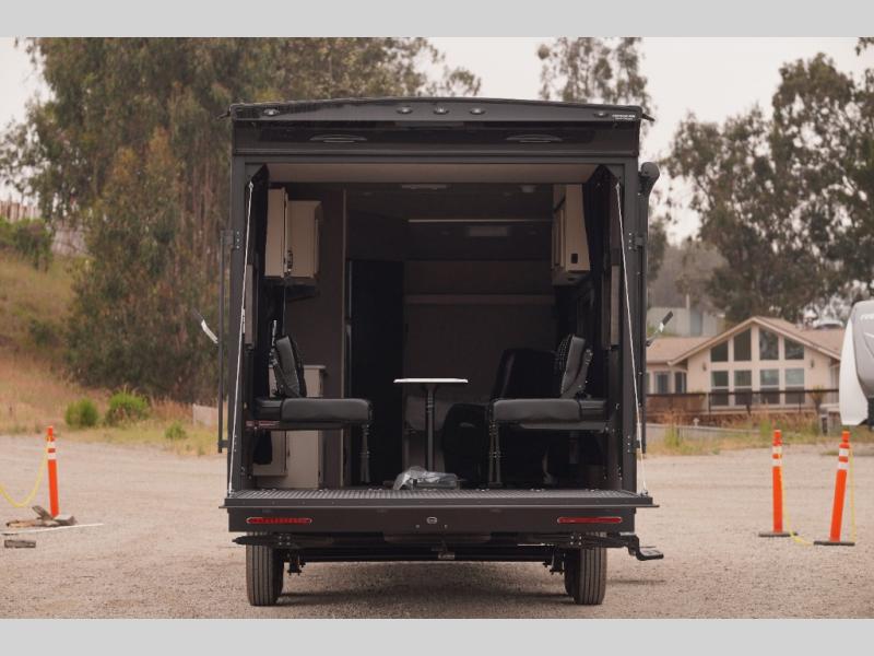 This simple, but convenient toy hauler is perfect for your riding weekends at the lake. There is a cargo area and a 7' ramp door to easily unload your toys. You can relax on the sofa or dual lounge chairs and let your guests sleep on the drop-down bed. The front corner flip-up bed is sure to bring comfort, and the full bath lets you clean up each day. This model includes a three burner cooktop, a 10 cu. ft. 12V refrigerator, and a microwave oven to cook meals each day. Head outdoors to find a 200W solar panel, a patio awning, four stabilizer jacks, and exterior speakers to name a few conveniences!