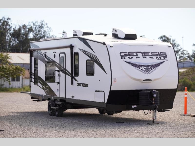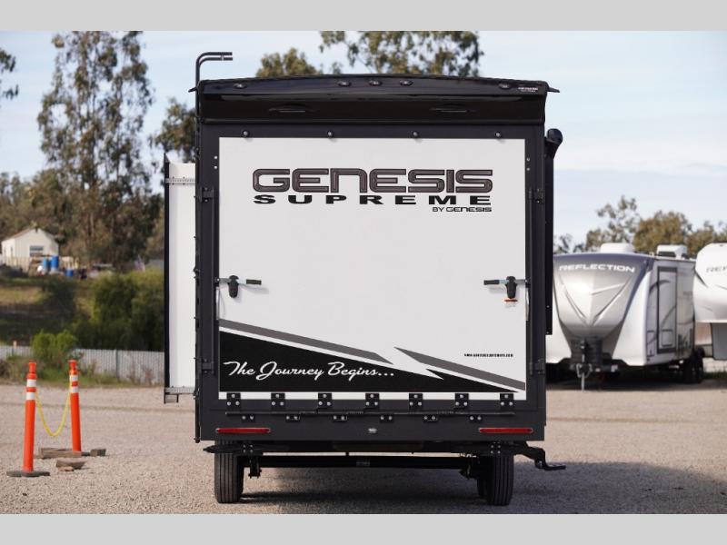 All sizes of off-road toys can fit into one of these Genesis Supreme fifth wheel toy haulers or travel trailer toy haulers! They are made for the outdoor enthusiasts and can handle harsh environments while still providing a luxurious lifestyle. With innovative floorplans built by engineers, you can know you will find what you're looking for in a toy hauler. Start your off-road journey today with your favorite model!