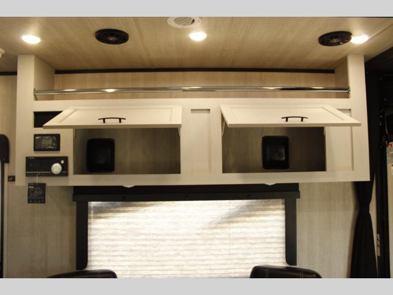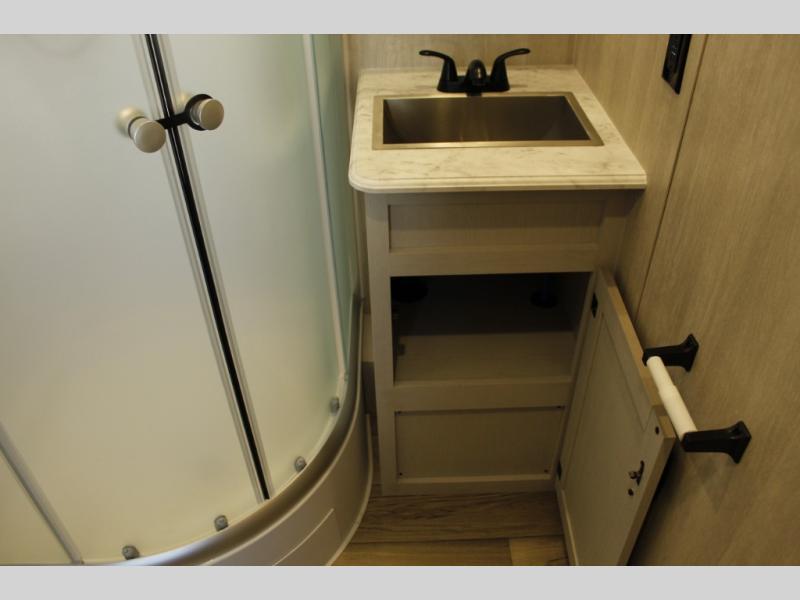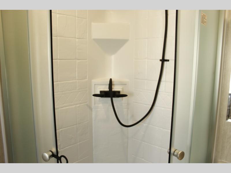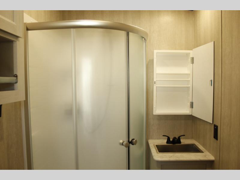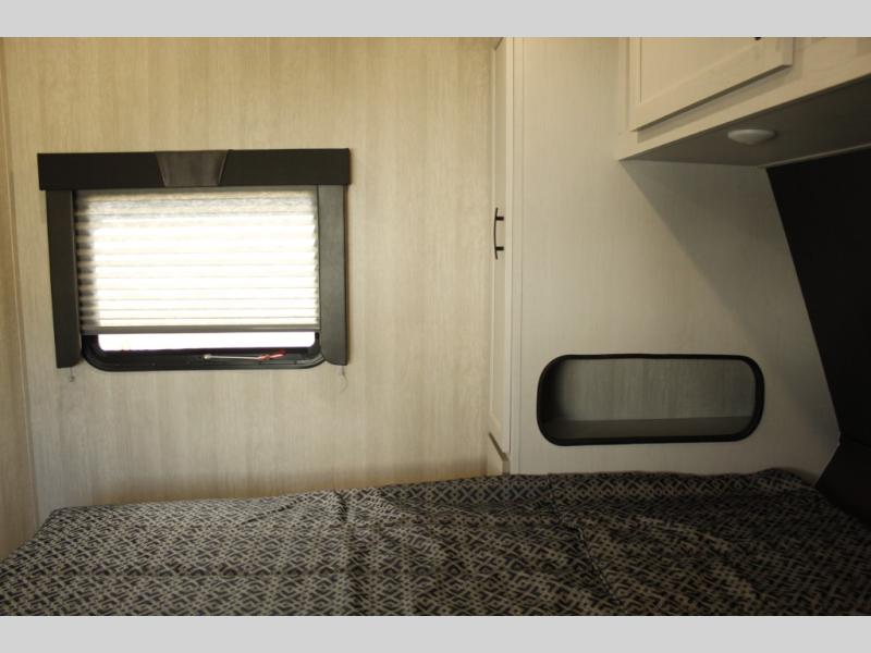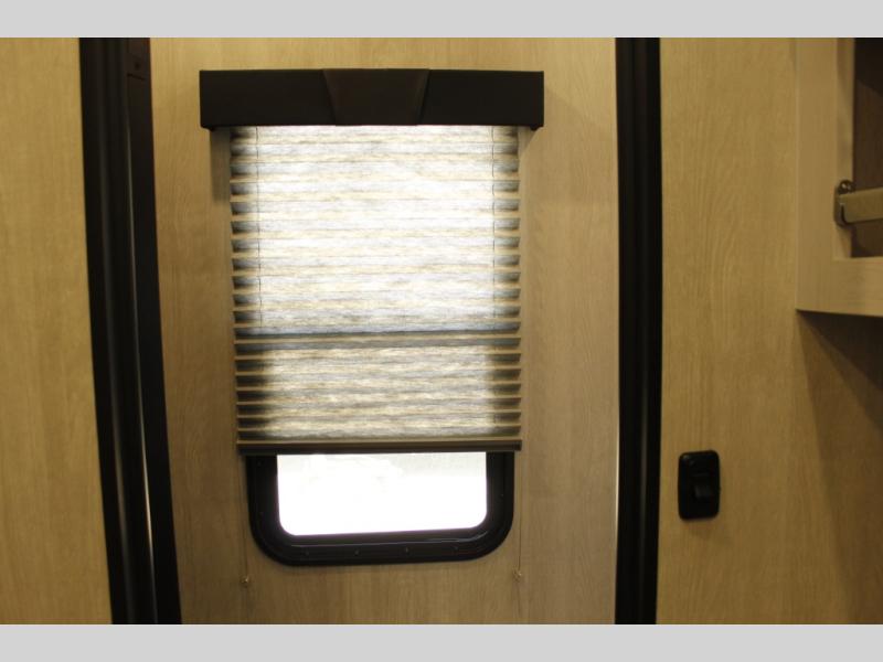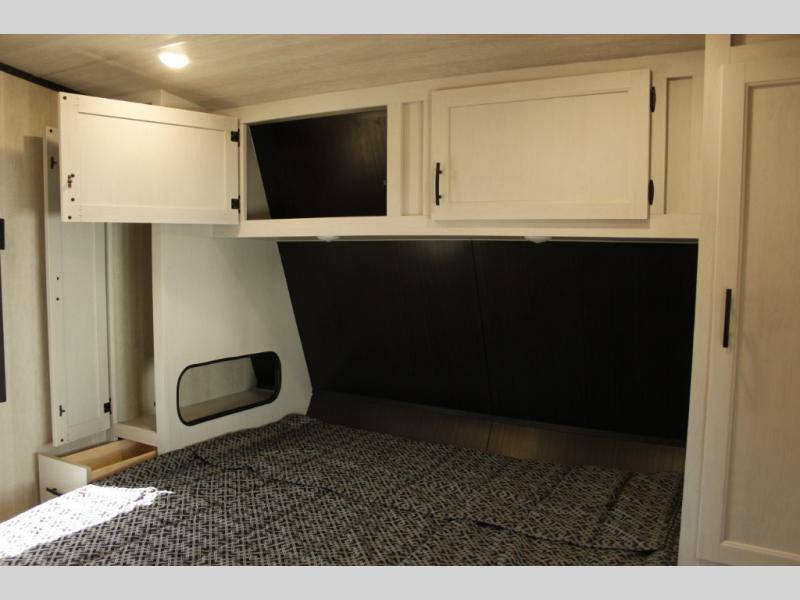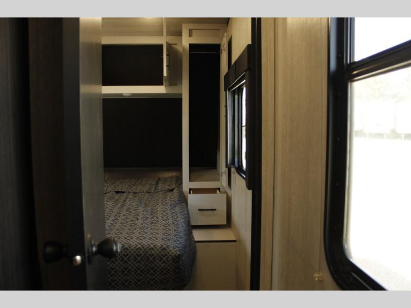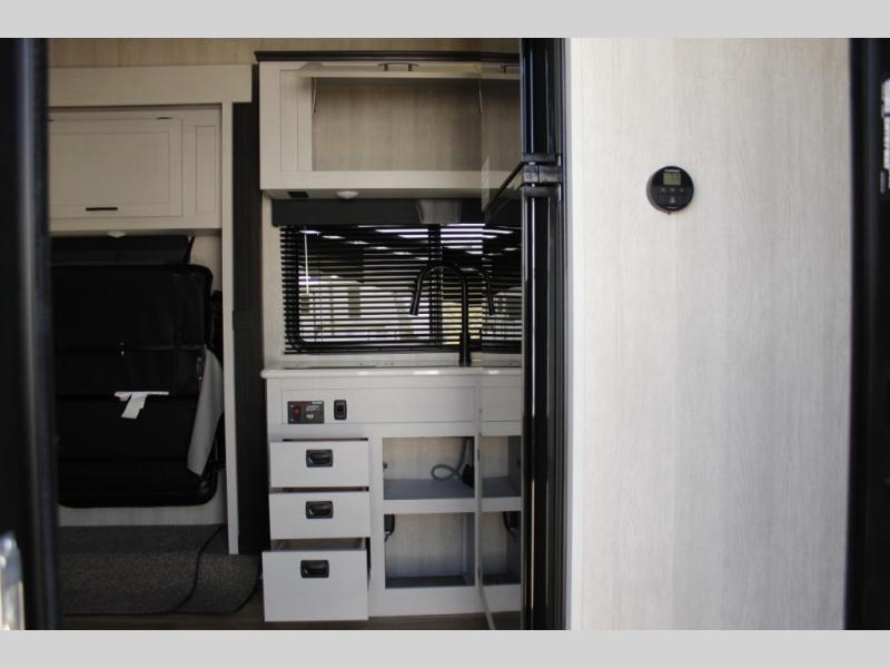 Looking for plenty of cargo space for your toys, a private bedroom for yourself with a walk-around bed, and a spacious full bath? You have found it with this toy hauler! You will also find lots of storage in the bedroom wardrobes, the overhead cabinets and along the exterior to carry all of your clothing, food and gear. The L-shaped kitchen offers full amenities including a 10 cu. ft. 12V refrigerator and microwave to keep everyone fed. You can dine inside at the booth dinette or on the sofa, or head outdoors to relax under the power awning. This model also includes two powered rear queen beds for guests to sleep on!