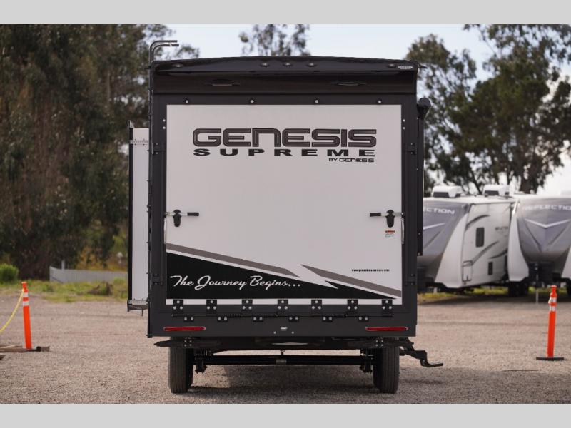 All sizes of off-road toys can fit into one of these Genesis Supreme fifth wheel toy haulers or travel trailer toy haulers! They are made for the outdoor enthusiasts and can handle harsh environments while still providing a luxurious lifestyle. With innovative floorplans built by engineers, you can know you will find what you're looking for in a toy hauler. Start your off-road journey today with your favorite model!