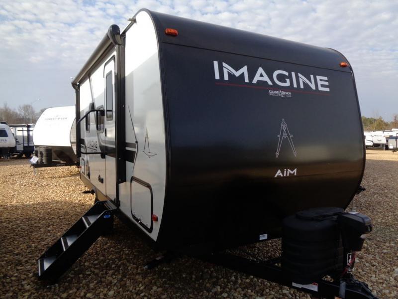 Aim for new destinations in one of these Grand Design Imagine AIM travel trailers! They are constructed to a superior standard with the 4-Seasons Protection Package that features a heated and enclosed underbelly with suspended tanks, a moisture barrier floor enclosure, a double insulated roof and front wall, and more. There is backup camera prep outside, along with a universal docking station, a power tongue jack, and durable Tuff-Ply pass-thru flooring for your camp gear. You are sure to feel at home with residential cabinetry, premium window treatments, residential countertops, and a spacious walk-in shower to name a few comforts. The on-demand tankless water heater is a feature you won't want to camp without and the hi-definition LED TV will ensure you'll never go bored on rainy days. Each model also comes with four AIM packages; the Peace of Mind Package, The Ultimate Power Package, The 4-Season Protection Package, and the Solar Package!