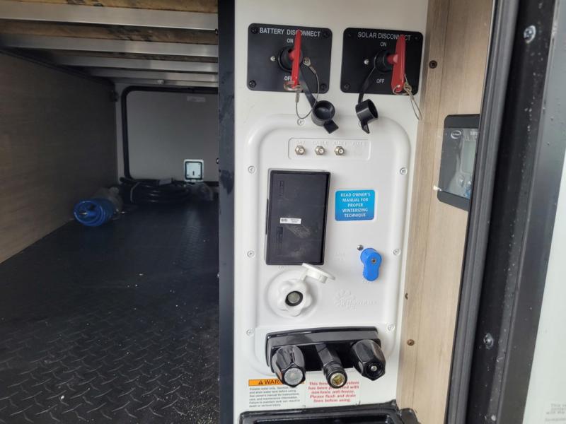 Unleash adventure with this incredible travel trailer! Sleep in style in the serene bedroom, featuring a plush queen bed, spacious wardrobe, and TV prep for entertainment. The kitchen is equipped with a pull-out pantry, 10 cu. refrigerator, microwave, and three-burner cooktop for delicious meal prep. Enjoy extra counter space with the flip-up countertop extension, optimal for easy and comfortable cooking. Family and friends can dine at the U-shaped dinette while watching the LED HDTV for added entertainment. The full bathroom offers a shower, and linen closet. Kids will love the double bunk bed, perfect for taking a nap. On the exterior, you will find the outdoor kitchen, pass-thru storage, and 20” x 20” baggage door/trash can storage, ideal for a better organization of your belongings. Finally, create outdoor activities without worrying about the weather thanks to the 19’ awning.