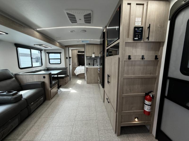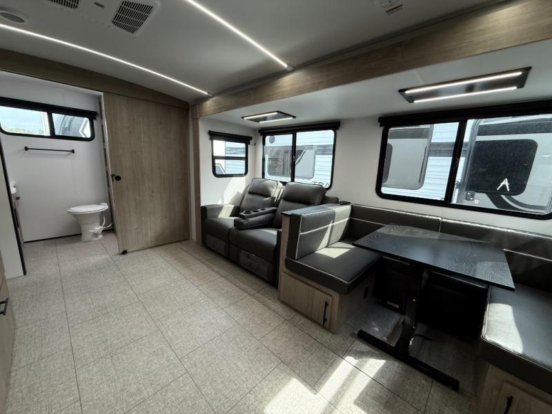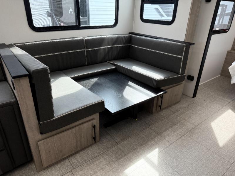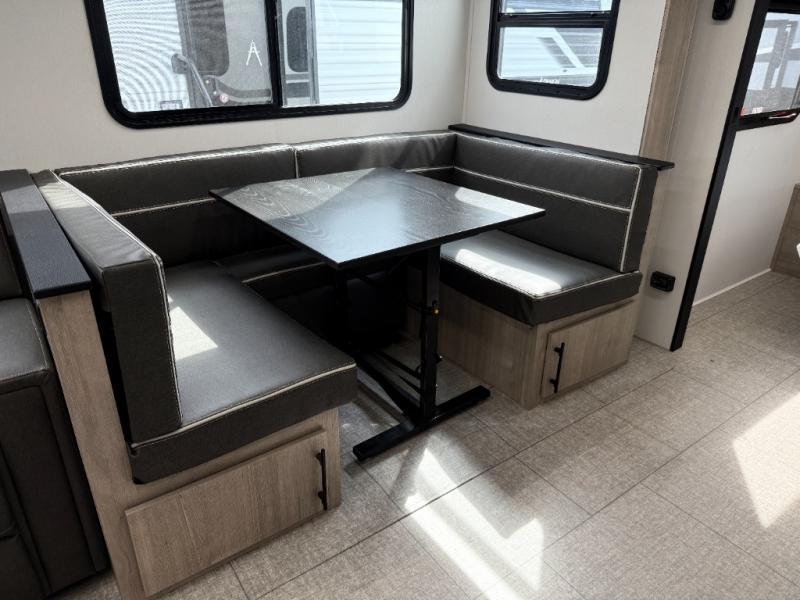 - After a day of adventure, unwind in the upgraded theater seating or gather around the U-shaped dinette, which doubles as an extra sleeping space.