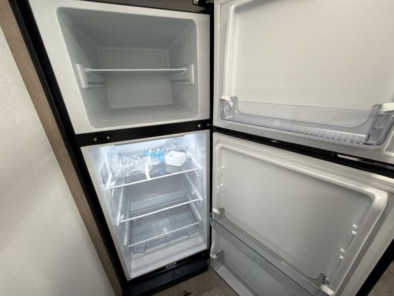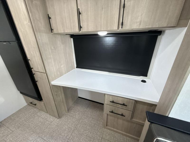 With this Imagine travel trailer, you can work while you're on the road because it offers you a desk in the main living area. You won't have to miss out on the action since you'll be right next to the booth dinette and tri-fold sofa, and there is even a pantry directly to the left of the desk for you to grab a quick snack while you're working. Once you're done with work, you can relax on the tri-fold sofa while you watch the telescoping LED HDTV, and the private bedroom offers you a 60" x 80" queen bed to rest on when you're ready to call it a night.