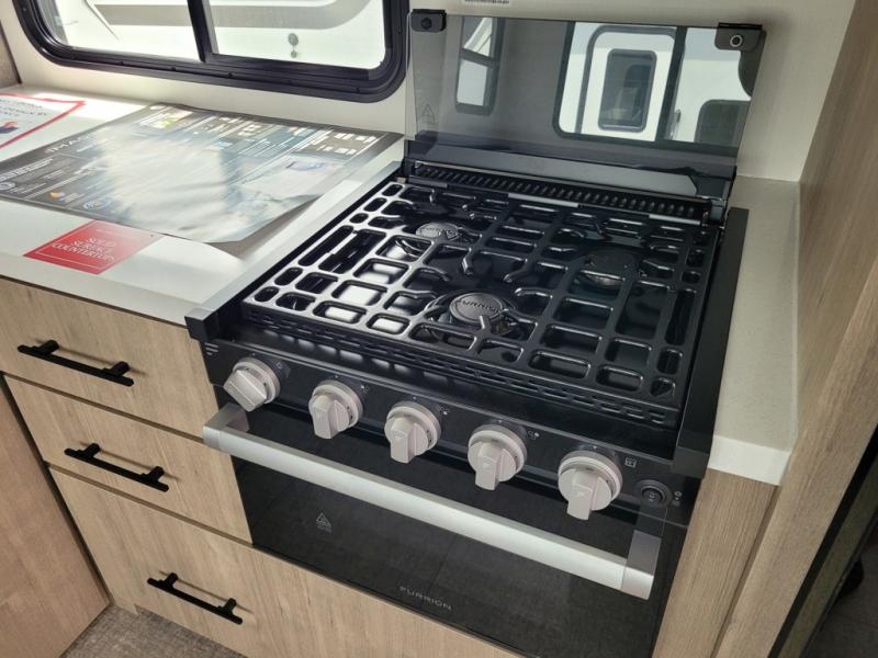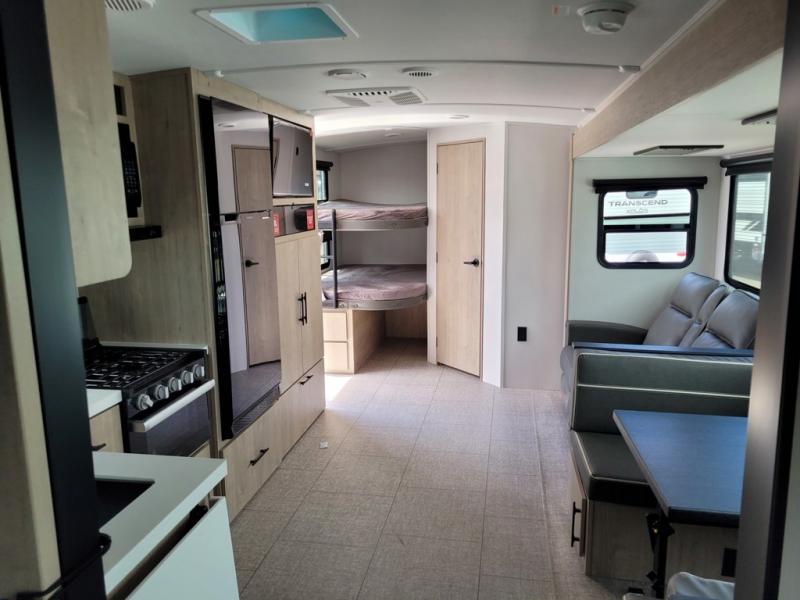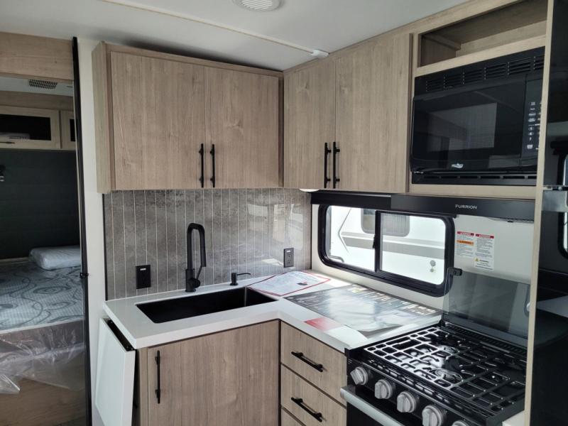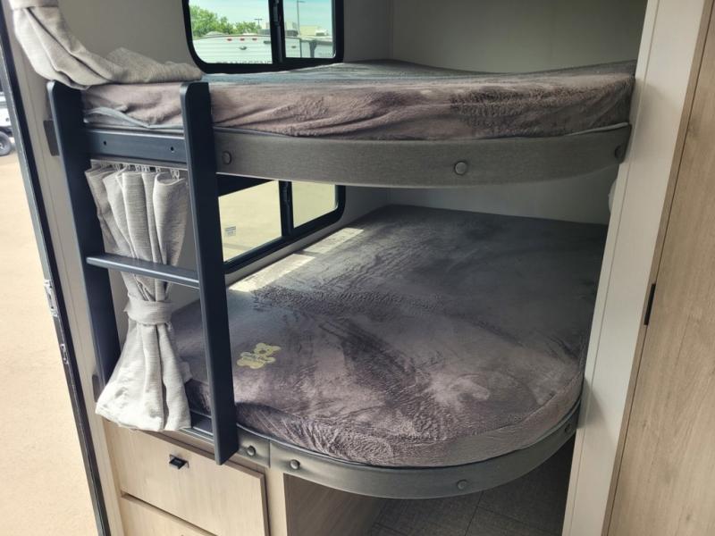 Where will you go with this Imagine travel trailer? The possibilities are endless! You can take your family on an exciting excursion because this trailer has enough sleeping space for everyone with a 60" x 80" queen bed in the private bedroom, a U-shaped dinette and tri-fold sofa in the main living area, and there is a set of 47" x 76" bunk beds with privacy curtains in the rear corner. You can come and go as you please with two entry doors, and the outdoor griddle and refrigerator will be fun to use when the weather is nice. The flip-up countertop extension will make it easier to prepare delicious home cooked meals and the shoe storage area helps to keep things neat and tidy.
