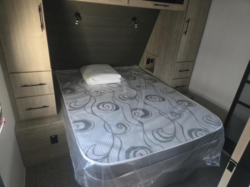What I liked most: Bunk area area lifts up for additional storage which is very unique. Place for shoes. The bathroom shower surround has a brick molded design look.