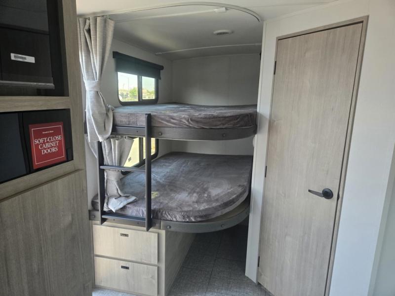 Where will you go with this Imagine travel trailer? The possibilities are endless! You can take your family on an exciting excursion because this trailer has enough sleeping space for everyone with a 60" x 80" queen bed in the private bedroom, a U-shaped dinette and tri-fold sofa in the main living area, and there is a set of 47" x 76" bunk beds with privacy curtains in the rear corner. You can come and go as you please with two entry doors, and the outdoor griddle and refrigerator will be fun to use when the weather is nice. The flip-up countertop extension will make it easier to prepare delicious home cooked meals and the shoe storage area helps to keep things neat and tidy.