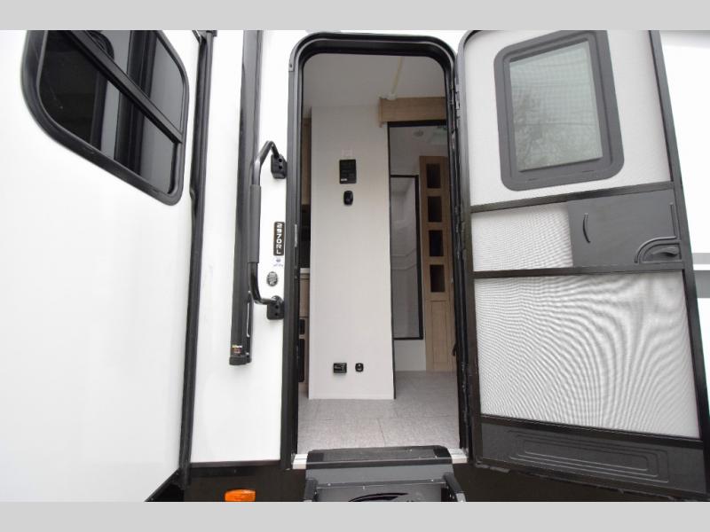 Outdoor Fun: With two power awnings, you can enjoy the great outdoors while being protected from the sun. Plus, the exterior features an LP quick connect for your grill and a coax TV hookup for outdoor entertainment.