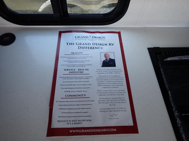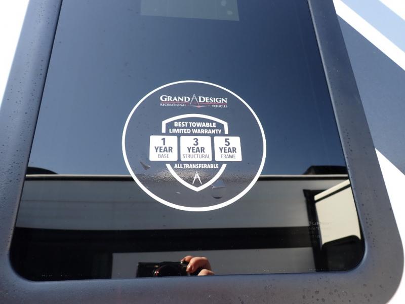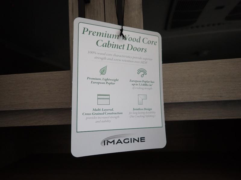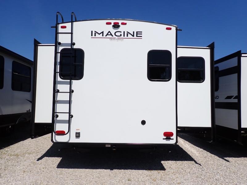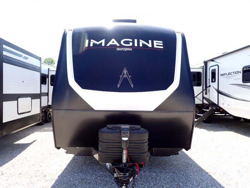 Just imagine leaving the world behind and secluding yourself away with your favorite people in your Grand Design Imagine travel trailer! The Imagine has been designed to enjoy extended season camping and includes a high-capacity furnace, a heated and enclosed underbelly with suspended tanks, a designated heat duct to the subfloor, and a high-density roof insulation with attic vent. You'll have maximum head room on the interior with 81" radius ceilings, and large panoramic windows to let in natural lighting. The exclusive drop-frame pass-through storage compartment is going to allow you to bring along lots of equipment, and the universal docking station is an all-in-one location for utilities and hook-ups. You'll also have industry-leading tank capacities so that you can fill and empty your tanks less often.
