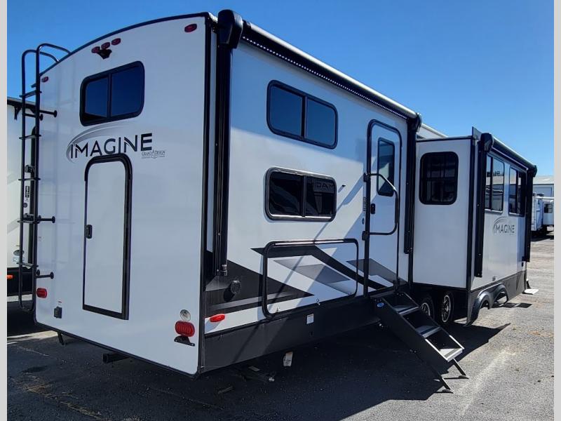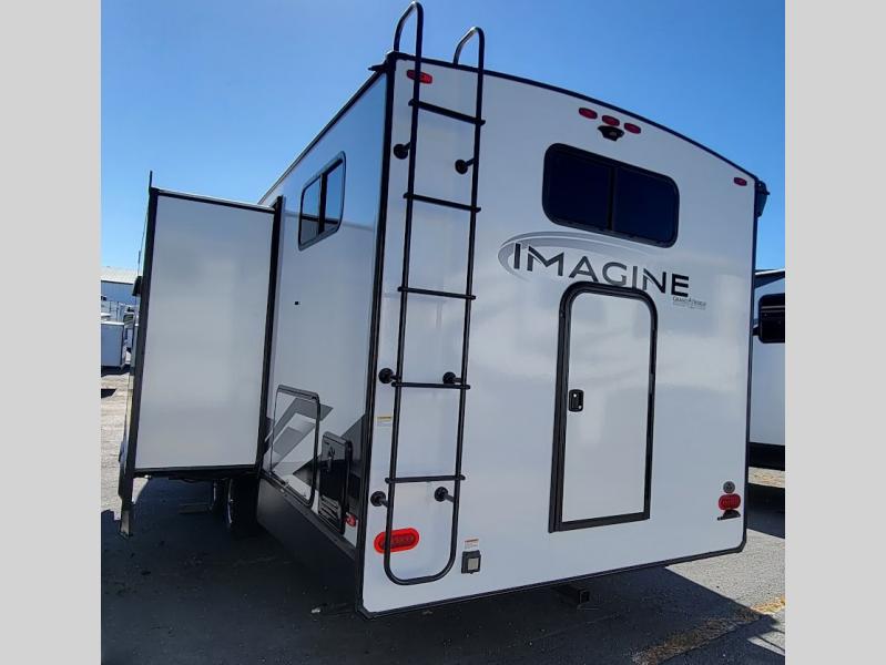 Just imagine leaving the world behind and secluding yourself away with your favorite people in your Grand Design Imagine travel trailer! The Imagine has been designed to enjoy extended season camping and includes a high-capacity furnace, a heated and enclosed underbelly with suspended tanks, a designated heat duct to the subfloor, and a high-density roof insulation with attic vent. You'll have maximum head room on the interior with 81" radius ceilings, and large panoramic windows to let in natural lighting. The exclusive drop-frame pass-through storage compartment is going to allow you to bring along lots of equipment, and the universal docking station is an all-in-one location for utilities and hook-ups. You'll also have industry-leading tank capacities so that you can fill and empty your tanks less often.