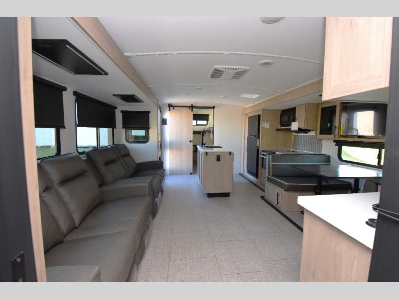 - Double Entry: The dual entrances make it easy to move in and out of the RV. A private entry to the master bedroom allows quick access to your bedroom and bathroom, providing an added level of privacy.