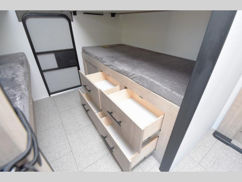 - Spacious Bunk Room: The quad-bunk setup in the rear bunkroom includes its own storage solutions, making it an ideal space for kids or extra guests to relax and store their belongings.