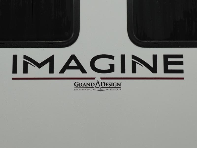 Just imagine leaving the world behind and secluding yourself away with your favorite people in your Grand Design Imagine travel trailer! The Imagine has been designed to enjoy extended season camping and includes a high-capacity furnace, a heated and enclosed underbelly with suspended tanks, a designated heat duct to the subfloor, and a high-density roof insulation with attic vent. You'll have maximum head room on the interior with 81" radius ceilings, and large panoramic windows to let in natural lighting. The exclusive drop-frame pass-through storage compartment is going to allow you to bring along lots of equipment, and the universal docking station is an all-in-one location for utilities and hook-ups. You'll also have oversized tank capacities so that you can fill and empty your tanks less often.