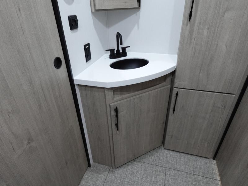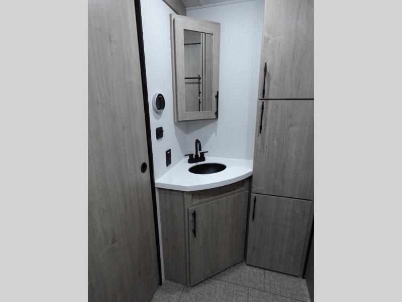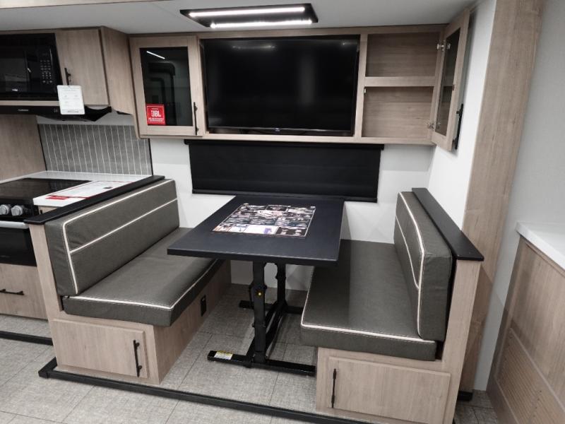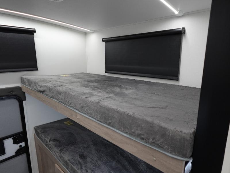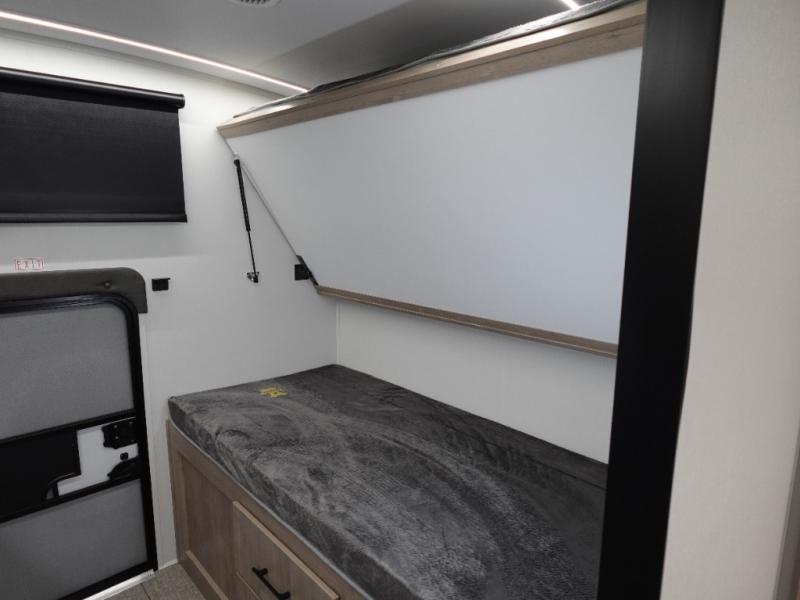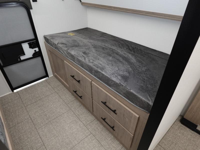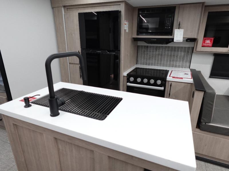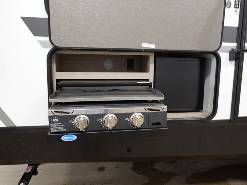 A great travel trailer for larger families or those that enjoy traveling with a few friends! This Imagine quad bunk model features two private bedrooms, with the master up front including a private entry/exit door just beyond a spacious walk-through bathroom that features a 30" x 36" shower with skylight to bring in more natural lighting each day, plus a toilet, sink and linen storage. In the kitchen, a nice island for food prep and cleaning up makes it easy to be part of the conversation in the room while you get meals ready for everyone. Speaking of food prep, how about the outside griddle and 1.6 cu. ft. refrigerator which is perfect for cooking outside, or for making late night snacks when all are enjoying the evening under the stars or in lawn chairs under one of two 9' 6" awnings with LED lighting. Your kids can bring along extra guests with the added sleeping that a quad bunk model provides!