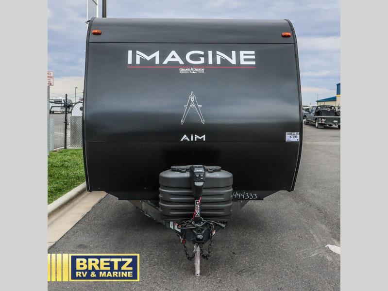 Aim for new destinations in one of these Grand Design Imagine AIM travel trailers! They are constructed to a superior standard with the 4-Seasons Protection Package that features a heated and enclosed underbelly with suspended tanks, a moisture barrier floor enclosure, a double insulated roof and front wall, and more. There is backup camera prep outside, along with a universal docking station, a power tongue jack, and durable Tuff-Ply pass-thru flooring for your camp gear. You are sure to feel at home with residential cabinetry, premium window treatments, residential countertops, and a spacious walk-in shower to name a few comforts. The on-demand tankless water heater is a feature you won't want to camp without and the hi-definition LED TV will ensure you'll never go bored on rainy days. Each model also comes with four AIM packages; the Peace of Mind Package, The Ultimate Power Package, The 4-Season Protection Package, and the Solar Package!