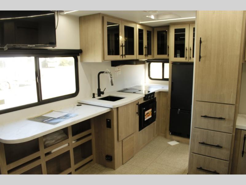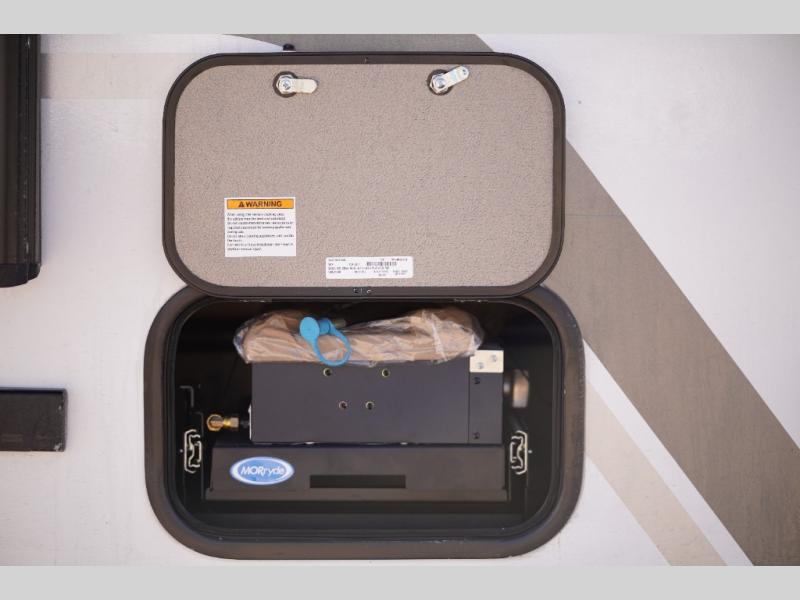 Aluminum Step above entry step, Dedicated sewer hose carrier, Residential Cabinetry, Universal Docking Station, On-Demand Tankless Hot Water Heater, Black Tank Flush, Aluminum Rims, Spare Tire & Carrier, Radial Tires, Front Rock Guard, Accessory Hitch Receiver, Exterior Cooking Griddle with Metal Pull Out Drawer, Premium Window Treatments, 6’ Coiled Breakaway Cable, Oversized Holding Tanks, Convection Microwave, Tuff-Ply Pass Through Flooring, Dual LP Tank Monitors.