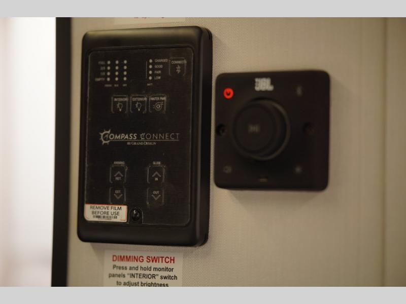 Adjustable Power Awning with LED Lights, 30 AMP Service, LED Interior Lighting, High Def LED TV, Detachable Power Cord, High Efficiency AC System, Motion Sensor LED Entry Lighting, Power Tongue Jack, Exterior Cable Hookup, Compass Connect, Tire Line TPMS Prep, Full Width Pass Through Storage, LED Light Strip with Dual Power Pressure Switches, Wireless Pop-Up Charger with Dual USB Ports.