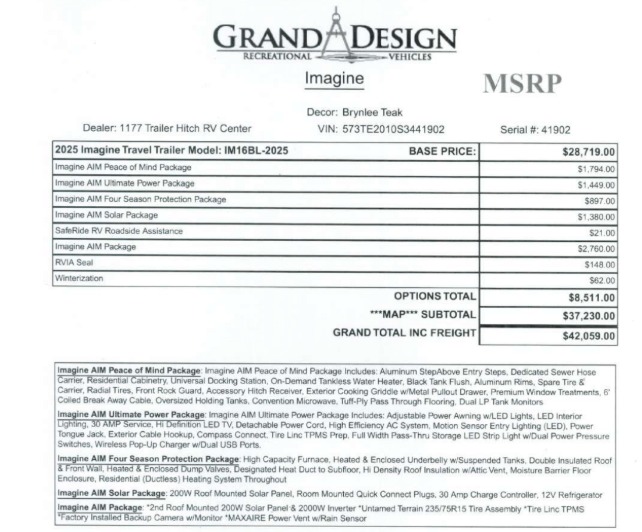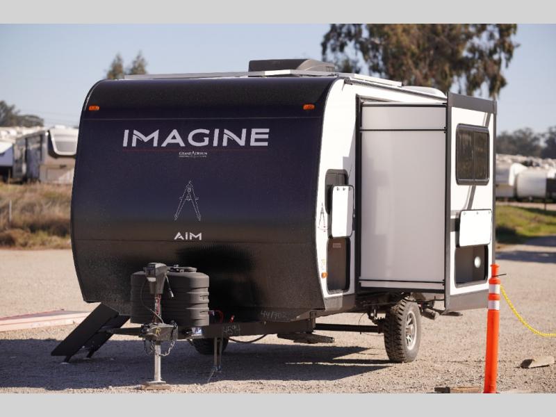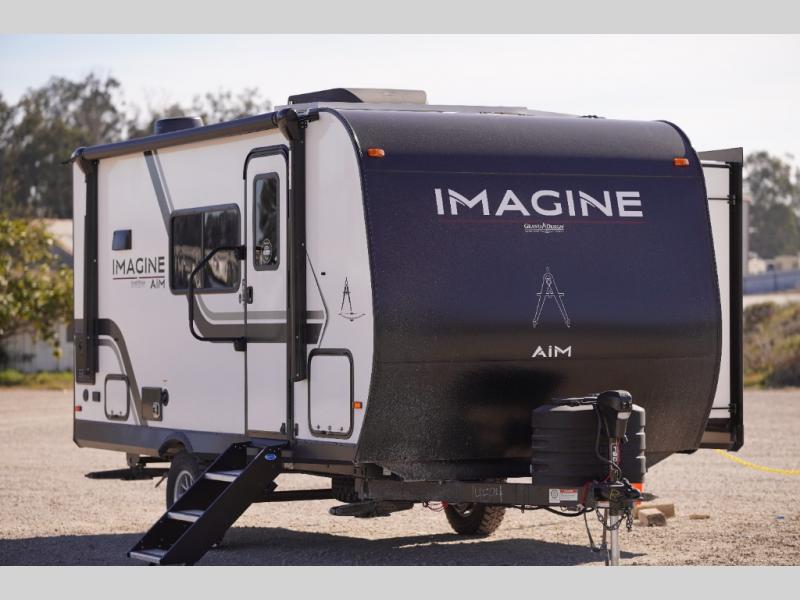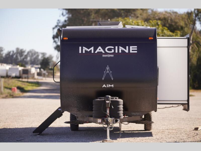 Aim for new destinations in one of these Grand Design Imagine AIM travel trailers! They are constructed to a superior standard with the 4-Seasons Protection Package that features a heated and enclosed underbelly with suspended tanks, a moisture barrier floor enclosure, a double insulated roof and front wall, and more. There is backup camera prep outside, along with a universal docking station, a power tongue jack, and durable Tuff-Ply pass-thru flooring for your camp gear. You are sure to feel at home with residential cabinetry, premium window treatments, residential countertops, and a spacious walk-in shower to name a few comforts. The on-demand tankless water heater is a feature you won't want to camp without and the hi-definition LED TV will ensure you'll never go bored on rainy days. Each model also comes with four AIM packages; the Peace of Mind Package, The Ultimate Power Package, The 4-Season Protection Package, and the Solar Package!