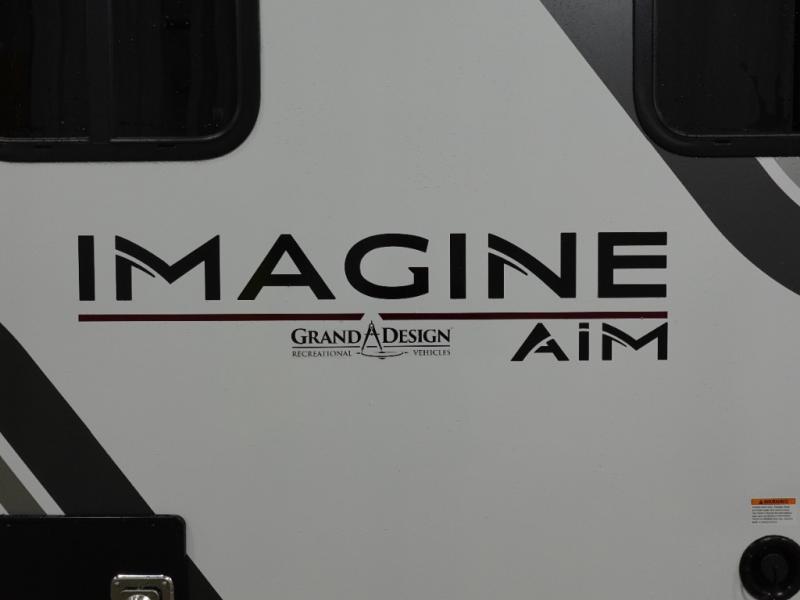 Aim for new destinations in one of these Grand Design Imagine AIM travel trailers! They are constructed to a superior standard with the 4-Seasons Protection Package that features a heated and enclosed underbelly with suspended tanks, a moisture barrier floor enclosure, a double insulated roof and front wall, and more. There is backup camera prep outside, along with a universal docking station, a power tongue jack, and durable Tuff-Ply pass-thru flooring for your camp gear. You are sure to feel at home with residential cabinetry, premium window treatments, residential countertops, and a spacious walk-in shower to name a few comforts. The on-demand tankless water heater is a feature you won't want to camp without and the hi-definition LED TV will ensure you'll never go bored on rainy days. Each model also comes with four AIM packages; the Peace of Mind Package, The Ultimate Power Package, The 4-Season Protection Package, and the Solar Package!