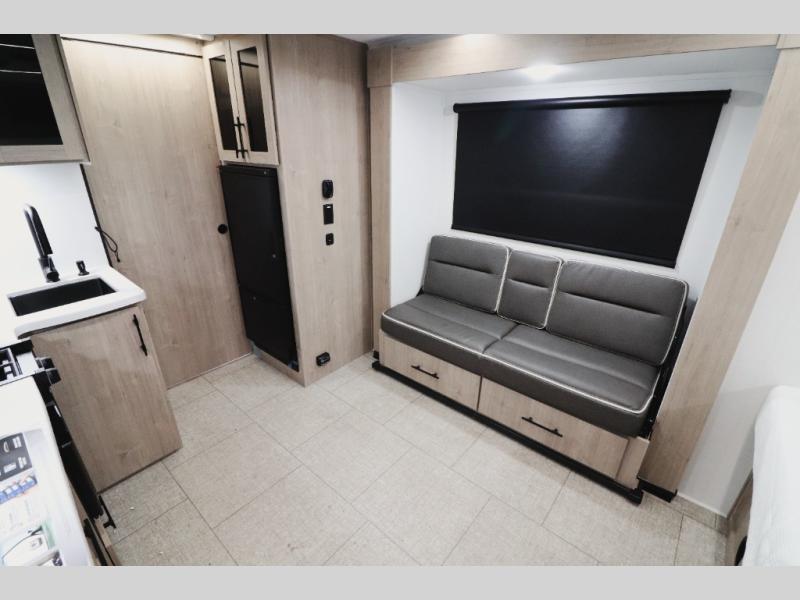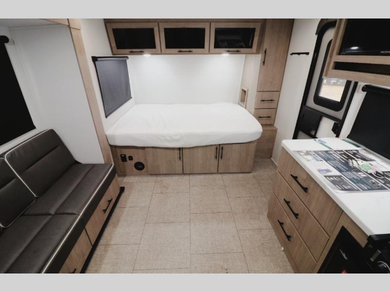 - Spacious Layout: Despite its compact size, this travel trailer comfortably sleeps up to four, featuring a queen bed and convertible dinette.