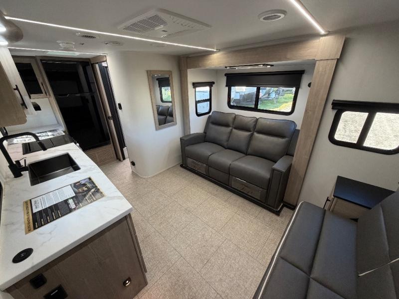 Let your imagination run wild with the possibilities that the Grand Design Imagine XLS travel trailer can provide! The Imagine XLS has been built with oversized tank capacities, an extra-large 2" fresh water drain valve, a ducted A/C system, a power tongue jack, and a heated and enclosed underbelly with suspended tanks. There is a designated heat duct to the subfloor and a residential ductless heating system throughout. For outdoor adventures, the electric awning with LED lights will enable you to stay protected, and the Tuff-Ply pass-thru flooring will withstand your many adventures. You will also love the XLS Solar Package that comes with a 180W roof mounted solar panel, a 40 Amp charge controller, a 12V 10 cu. ft. refrigerator, and roof mounted quick connect plugs!