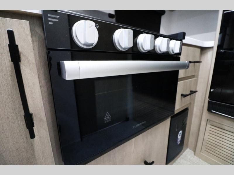 The exterior of the 2025 Grand Design Imagine XLS 17MKE exudes modern elegance with its sleek, aerodynamic design and durable aluminum siding. The eye-catching graphics and smooth finish make it stand out in any campground. Equipped with easy-to-use power stabilizer jacks, a convenient outdoor kitchen, and a spacious pass-through storage area, this travel trailer is ready for all your adventures. The large panoramic windows allow natural light to flood the interior, creating an open and airy atmosphere.