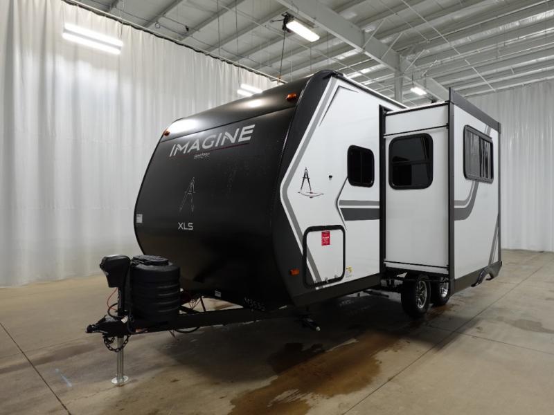 Let your imagination run wild with the possibilities that the Grand Design Imagine XLS travel trailer can provide! The Imagine XLS has been built with oversized tank capacities, an extra-large 2" fresh water drain valve, a ducted A/C system, a power tongue jack, and a heated and enclosed underbelly with suspended tanks. There is a designated heat duct to the subfloor and a residential ductless heating system throughout. For outdoor adventures, the electric awning with LED lights will enable you to stay protected, and the Tuff-Ply pass-thru flooring will withstand your many adventures. You will also love the XLS Solar Package that comes with a 200W roof mounted solar panel, a 30 Amp charge controller, a 12V 10 cu. ft. refrigerator, and roof mounted quick connect plugs!