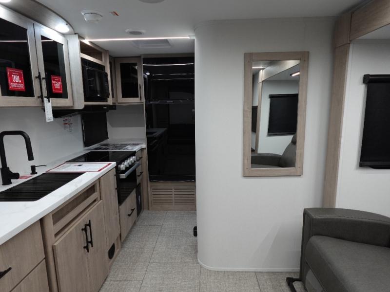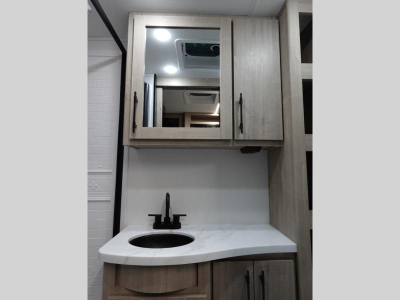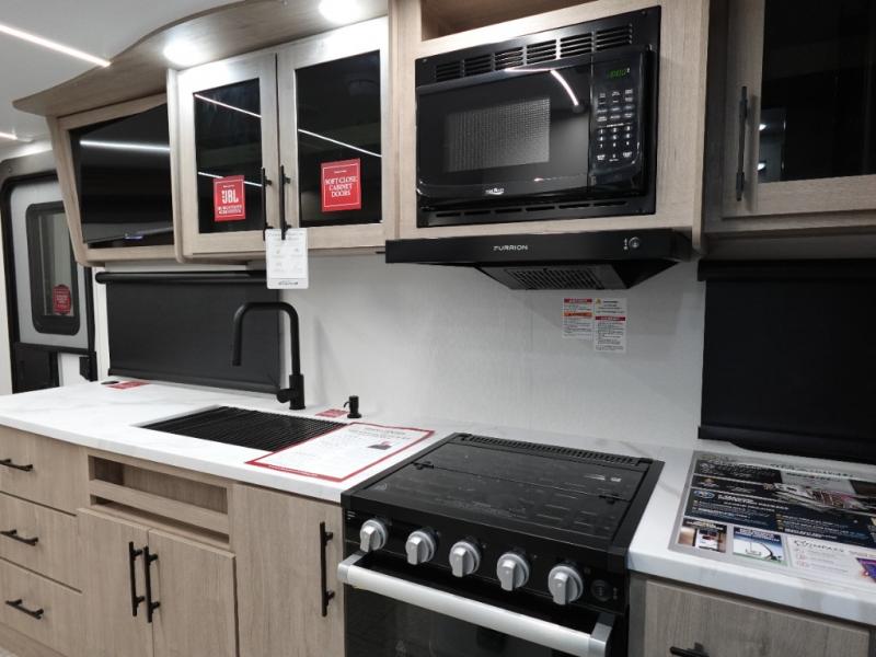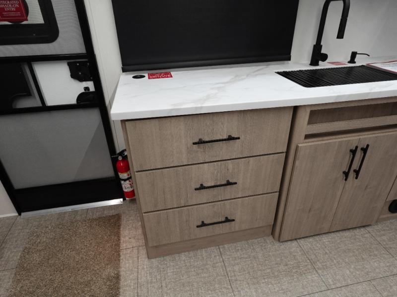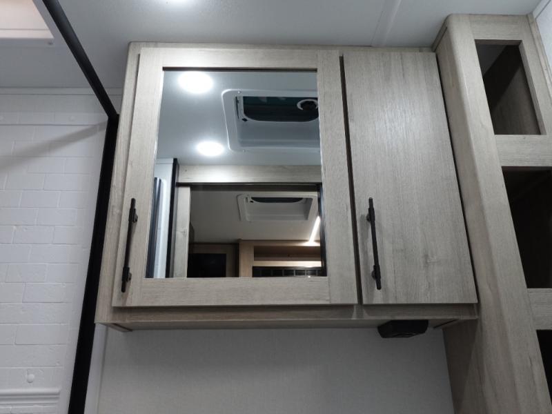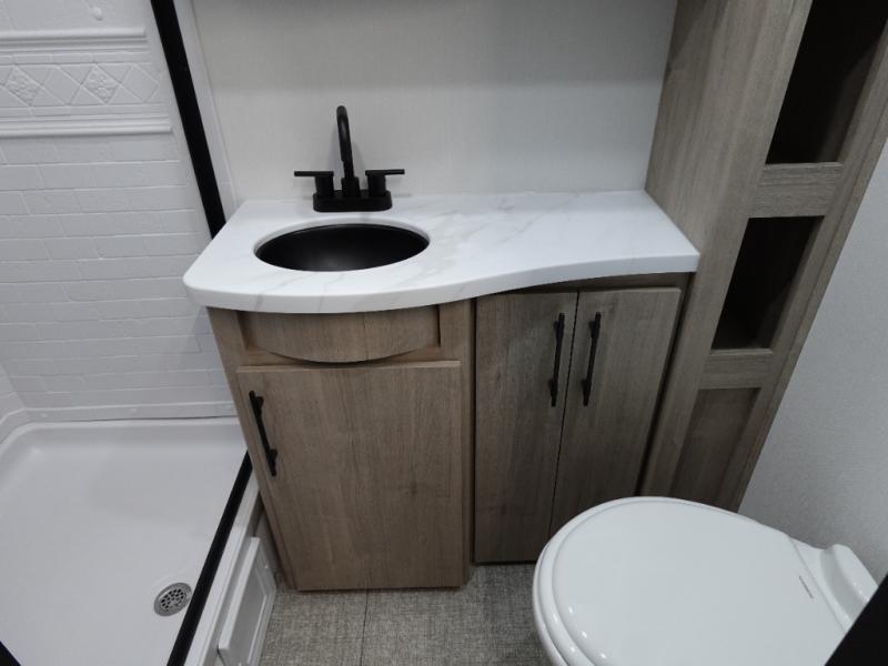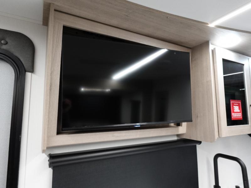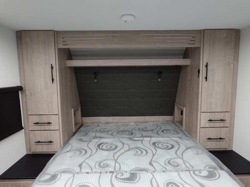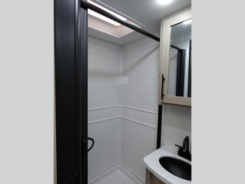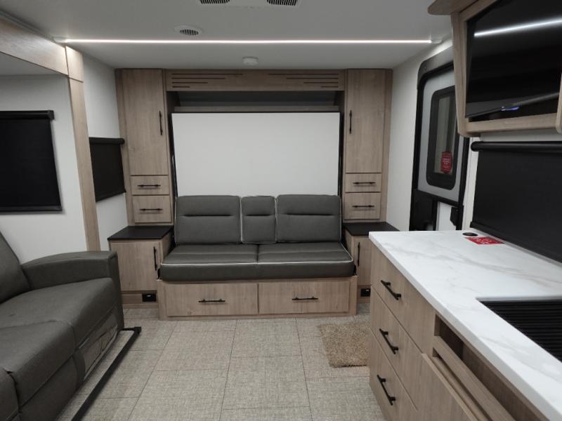 The Murphy bed is the eye-catching feature on this Imagine XLS travel trailer! Not only can it fold away in the morning to reveal a sofa for lounging, but it will also provide you with drawer storage under the sofa. Another functional feature is the theater dinette with a removable table in front. It rests on the single slide so that there is more floor space, and it offers you great comfort while you dine across from the LED HDTV. A full bathroom will keep you clean and fresh with its residential walk-in shower, skylight, linen closet, vanity, toilet, and power vent fan.