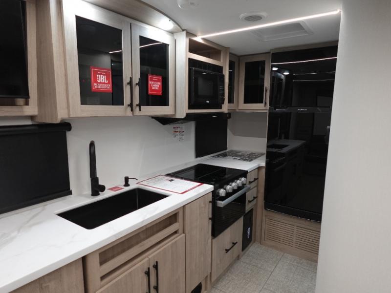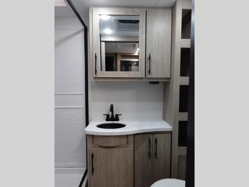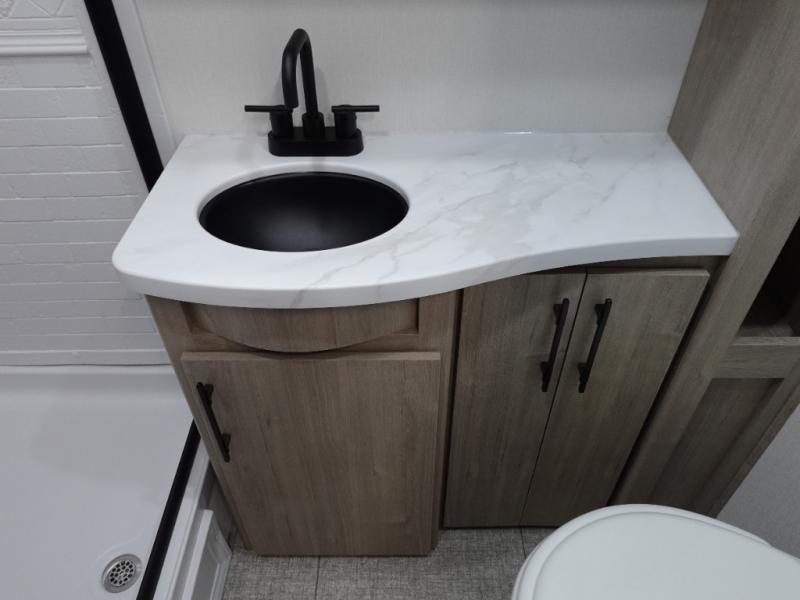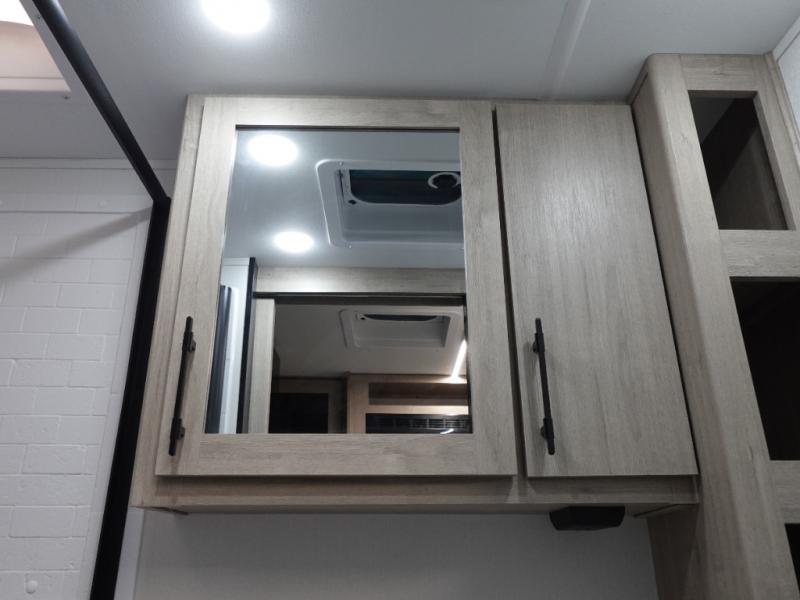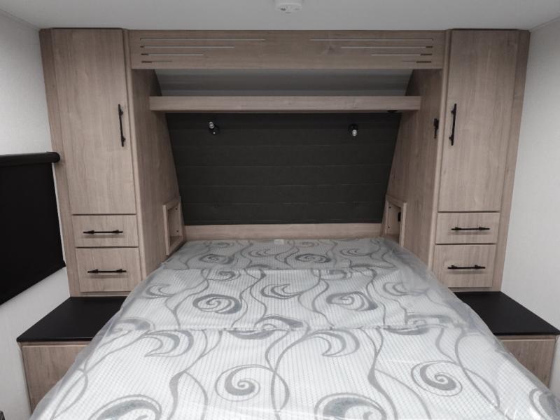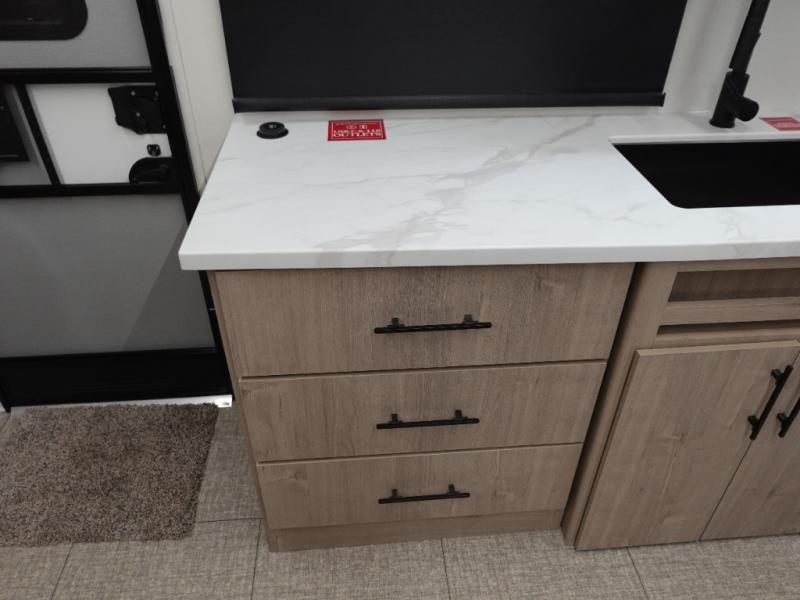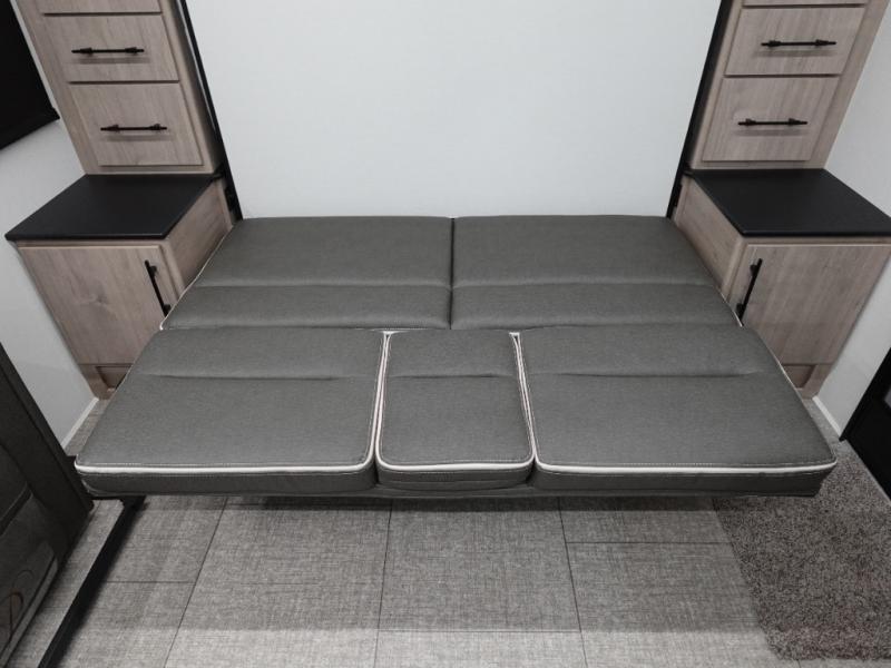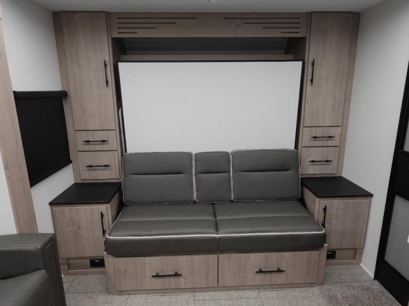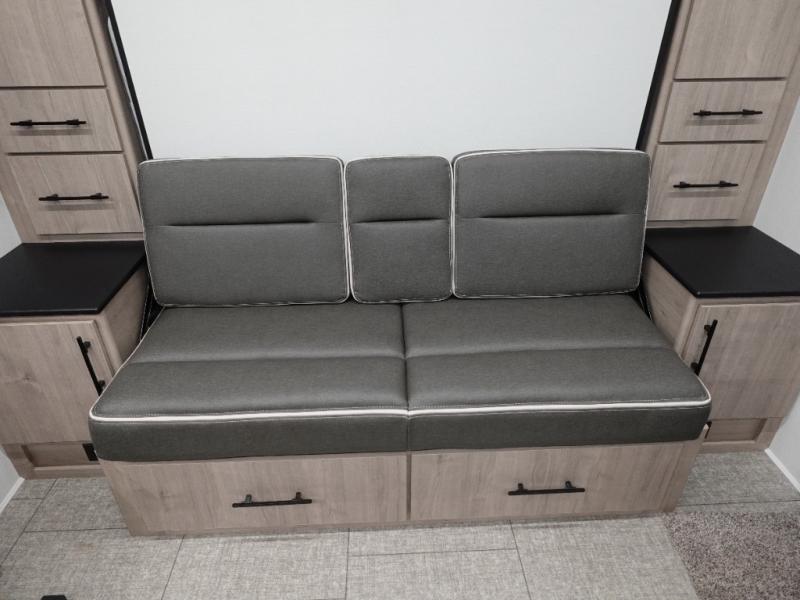 The Murphy bed is the eye-catching feature on this Imagine XLS travel trailer! Not only can it fold away in the morning to reveal a sofa for lounging, but it will also provide you with drawer storage under the sofa. Another functional feature is the theater dinette with a removable table in front. It rests on the single slide so that there is more floor space, and it offers you great comfort while you dine across from the LED HDTV. A full bathroom will keep you clean and fresh with its residential walk-in shower, skylight, linen closet, vanity, toilet, and power vent fan.