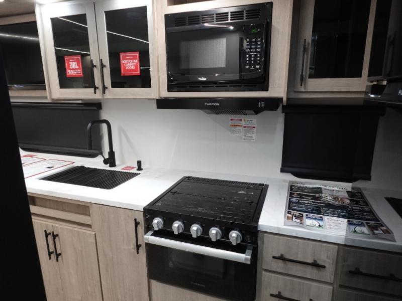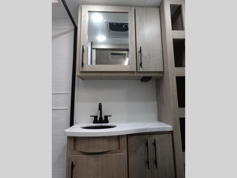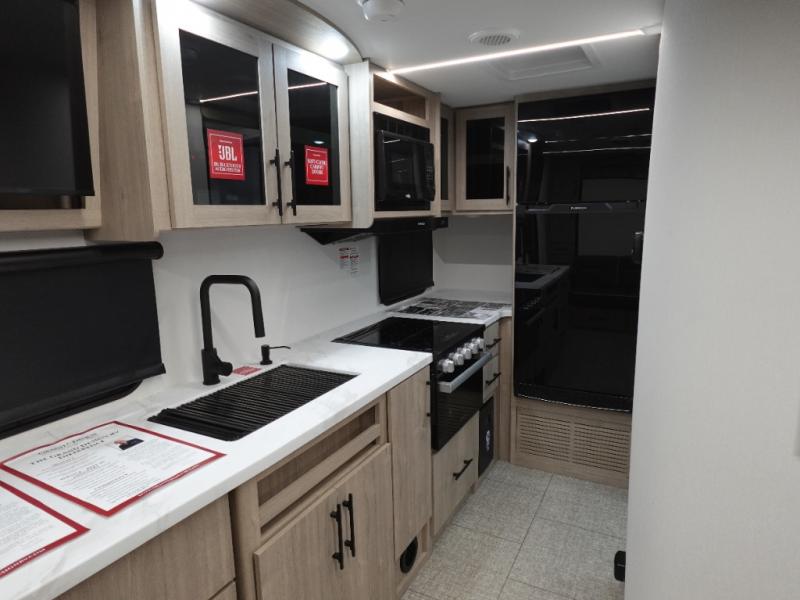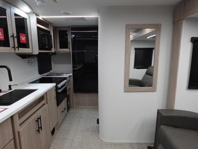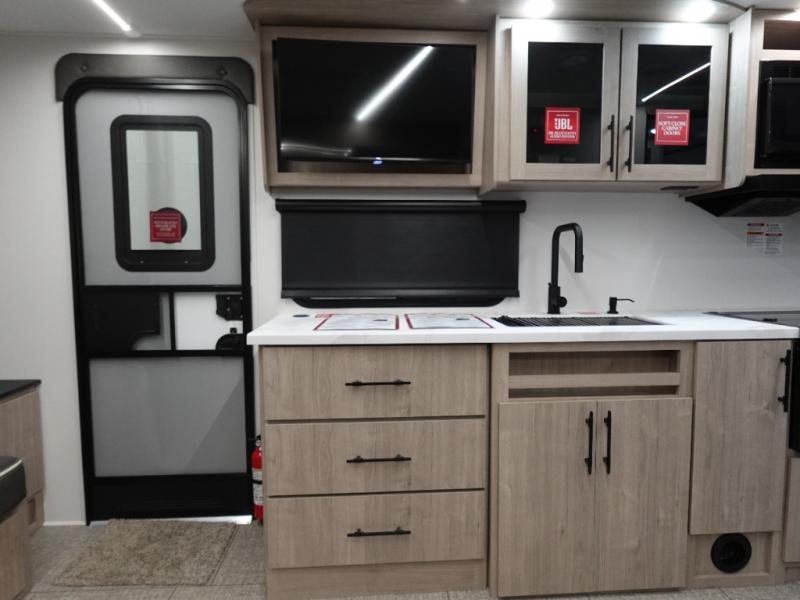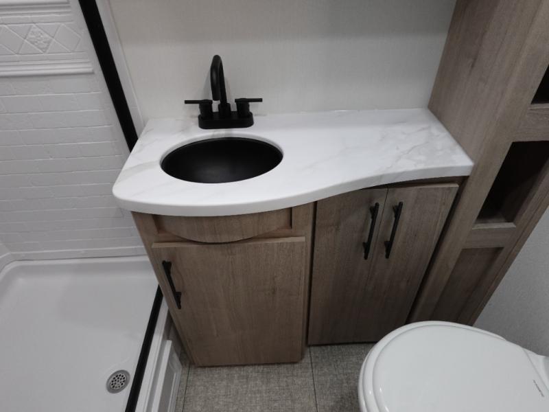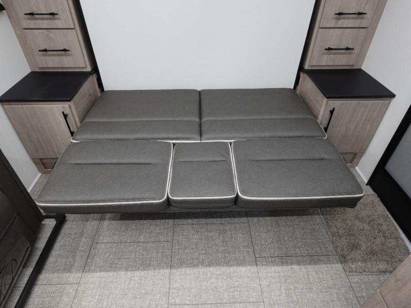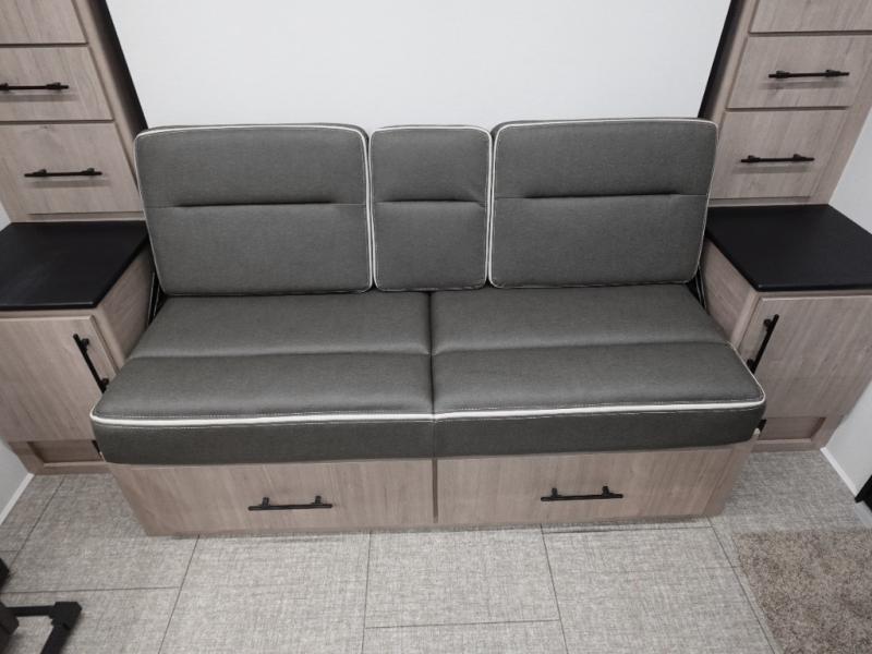 The Murphy bed is the eye-catching feature on this Imagine XLS travel trailer! Not only can it fold away in the morning to reveal a sofa for lounging, but it will also provide you with drawer storage under the sofa. It rests on the single slide so that there is more floor space, and it offers you great comfort while you dine across from the LED HDTV. A full bathroom will keep you clean and fresh with its residential walk-in shower, skylight, linen closet, vanity, toilet, and power vent fan.