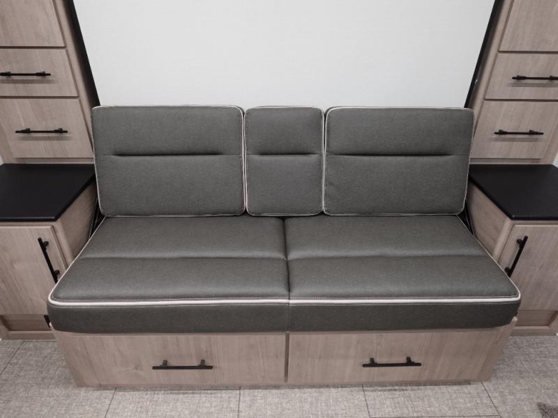 The Murphy bed is the eye-catching feature on this Imagine XLS travel trailer! Not only can it fold away in the morning to reveal a sofa for lounging, but it will also provide you with drawer storage under the sofa. Another functional feature is the theater dinette with a removable table in front. It rests on the single slide so that there is more floor space, and it offers you great comfort while you dine across from the LED HDTV. A full bathroom will keep you clean and fresh with its residential walk-in shower, skylight, linen closet, vanity, toilet, and power vent fan.