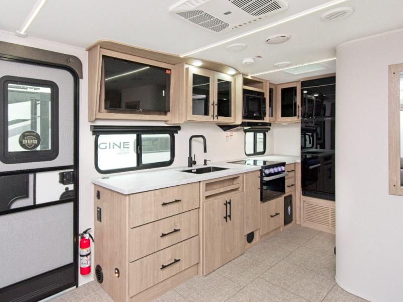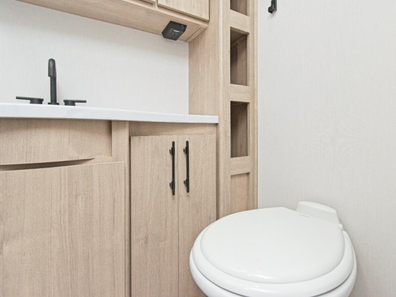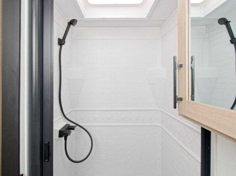 - Efficient Systems: Features like an extra-large 2" fresh water drain valve, ducted A/C system, and a power tongue jack.