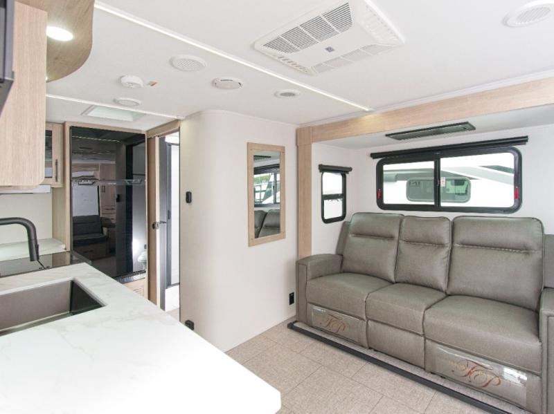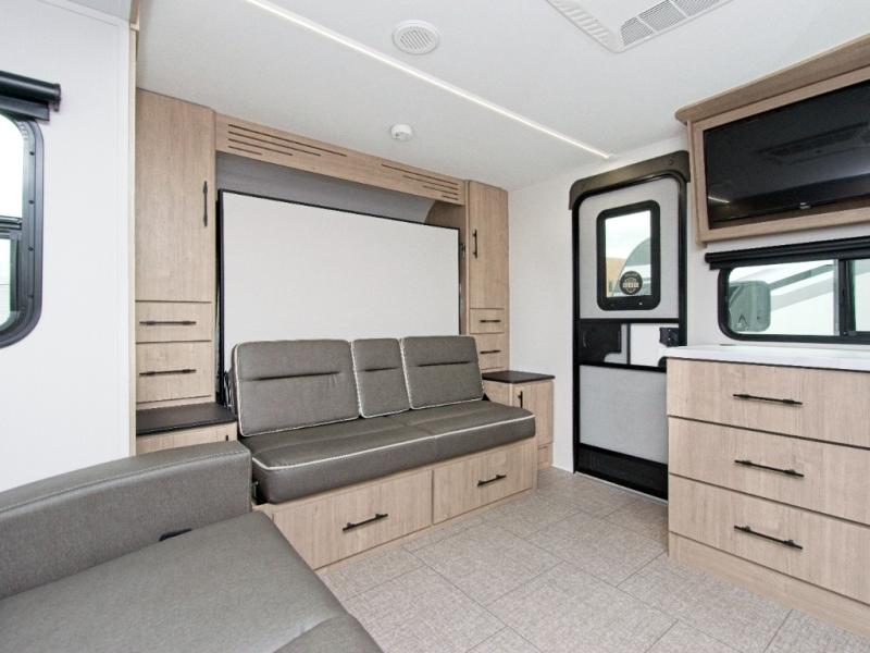 - Outdoor Ready: Electric awning with LED lights and Tuff-Ply pass-thru flooring for durability.