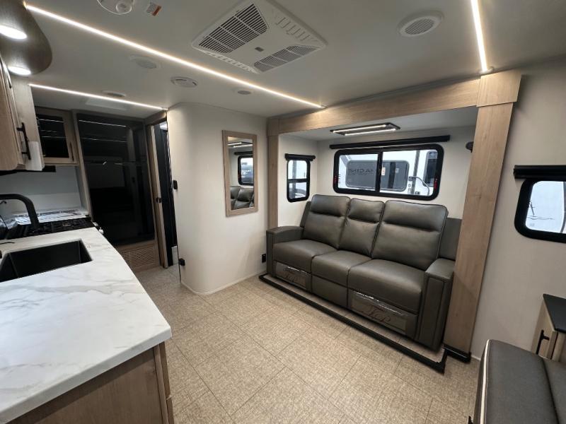 Let your imagination run wild with the possibilities that the Grand Design Imagine XLS travel trailer can provide! The Imagine XLS has been built with oversized tank capacities, an extra-large 2" fresh water drain valve, a ducted A/C system, a power tongue jack, and a heated and enclosed underbelly with suspended tanks. There is a designated heat duct to the subfloor and a residential ductless heating system throughout. For outdoor adventures, the electric awning with LED lights will enable you to stay protected, and the Tuff-Ply pass-thru flooring will withstand your many adventures. You will also love the XLS Solar Package that comes with a 200W roof mounted solar panel, a 30 Amp charge controller, a 12V 10 cu. ft. refrigerator, and roof mounted quick connect plugs!