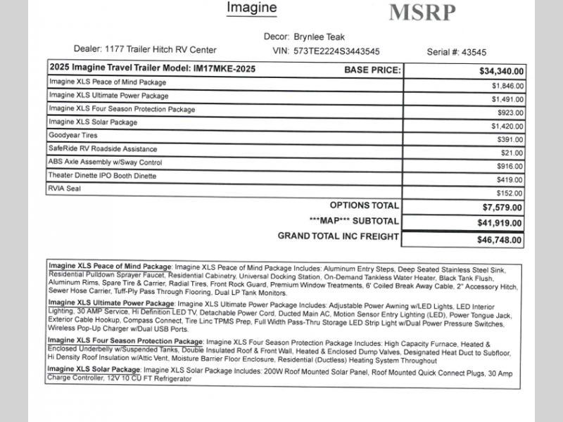 Let your imagination run wild with the possibilities that the Grand Design Imagine XLS travel trailer can provide! The Imagine XLS has been built with oversized tank capacities, an extra-large 2" fresh water drain valve, a ducted A/C system, a power tongue jack, and a heated and enclosed underbelly with suspended tanks. There is a designated heat duct to the subfloor and a residential ductless heating system throughout. For outdoor adventures, the electric awning with LED lights will enable you to stay protected, and the Tuff-Ply pass-thru flooring will withstand your many adventures. You will also love the XLS Solar Package that comes with a 200W roof mounted solar panel, a 30 Amp charge controller, a 12V 10 cu. ft. refrigerator, and roof mounted quick connect plugs!