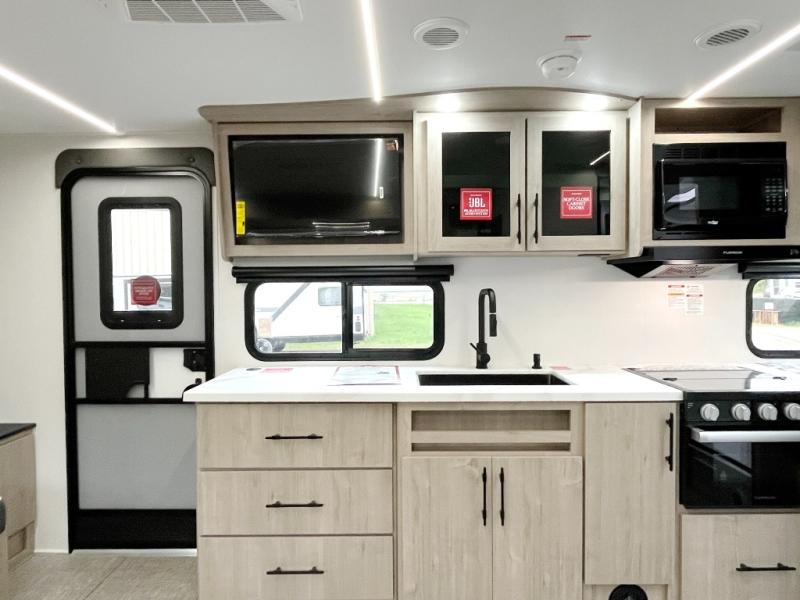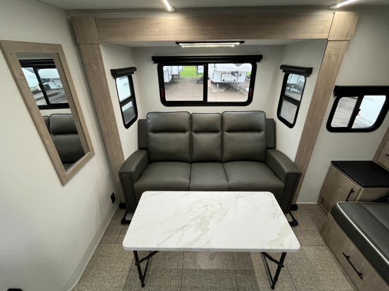 Let your imagination run wild with the possibilities that the Grand Design Imagine XLS travel trailer can provide! The Imagine XLS has been built with oversized tank capacities, an extra-large 2" fresh water drain valve, a ducted A/C system, a power tongue jack, and a heated and enclosed underbelly with suspended tanks. There is a designated heat duct to the subfloor and a residential ductless heating system throughout. For outdoor adventures, the electric awning with LED lights will enable you to stay protected, and the Tuff-Ply pass-thru flooring will withstand your many adventures. You will also love the XLS Solar Package that comes with a 200W roof mounted solar panel, a 30 Amp charge controller, a 12V 10 cu. ft. refrigerator, and roof mounted quick connect plugs!