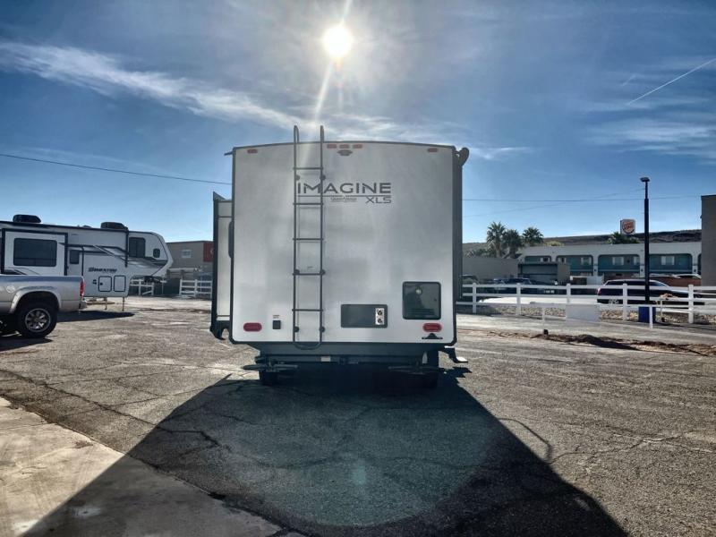 Let your imagination run wild with the possibilities that the Grand Design Imagine XLS travel trailer can provide! The Imagine XLS has been built with oversized tank capacities, an extra-large 2" fresh water drain valve, a ducted A/C system, a power tongue jack, and a heated and enclosed underbelly with suspended tanks. There is a designated heat duct to the subfloor and a residential ductless heating system throughout. For outdoor adventures, the electric awning with LED lights will enable you to stay protected, and the Tuff-Ply pass-thru flooring will withstand your many adventures. You will also love the XLS Solar Package that comes with a 200W roof mounted solar panel, a 30 Amp charge controller, a 12V 10 cu. ft. refrigerator, and roof mounted quick connect plugs!