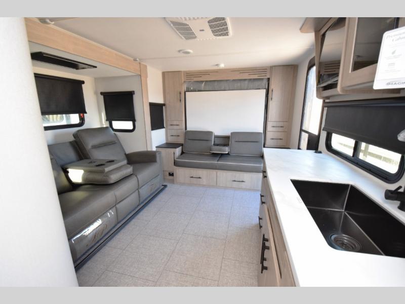 The Imagine XLS 17MKE is perfect for weekend getaways or extended road trips. With its smart floorplan and luxury finishes, you’ll feel right at home wherever you travel. The rear kitchen layout provides generous counter space, stainless-steel appliances, and plenty of storage. The Murphy bed system lets you enjoy a spacious living area during the day and a cozy sleeping space at night, while the reclining theater seating offers the perfect place to unwind after a long day of exploring.