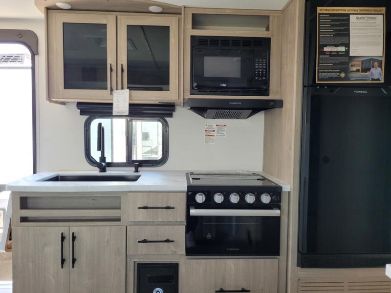Let your imagination run wild with the possibilities that the Grand Design Imagine XLS travel trailer can provide! The Imagine XLS has been built with oversized tank capacities, an extra-large 2" fresh water drain valve, a ducted A/C system, a power tongue jack, and a heated and enclosed underbelly with suspended tanks. There is a designated heat duct to the subfloor and a residential ductless heating system throughout. For outdoor adventures, the electric awning with LED lights will enable you to stay protected, and the Tuff-Ply pass-thru flooring will withstand your many adventures. You will also love the XLS Solar Package that comes with a 180W roof mounted solar panel, a 40 Amp charge controller, a 12V 10 cu. ft. refrigerator, and roof mounted quick connect plugs!