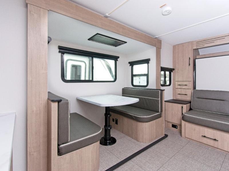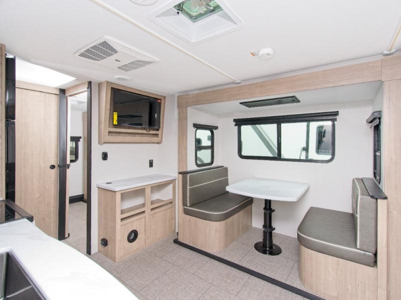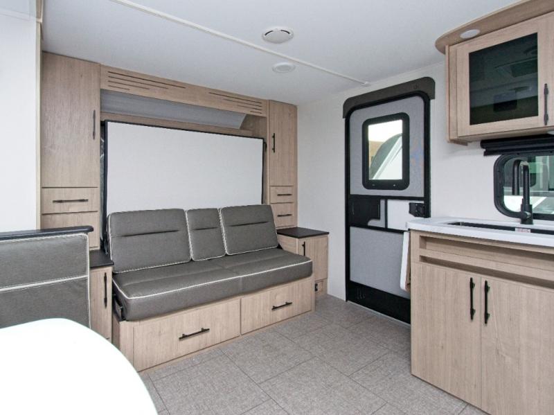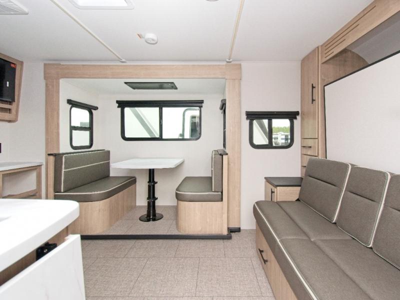 Your family will love the spacious and versatile layout of the Imagine XLS 22BHE. The double slides and Murphy bed provide ample space during the day and a comfortable sleeping area at night, complete with a privacy curtain. The booth dinette slides out to create even more room and features windows on three sides, offering a scenic view while you enjoy your meals.