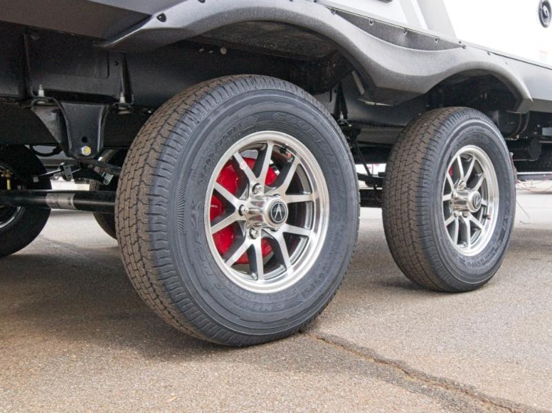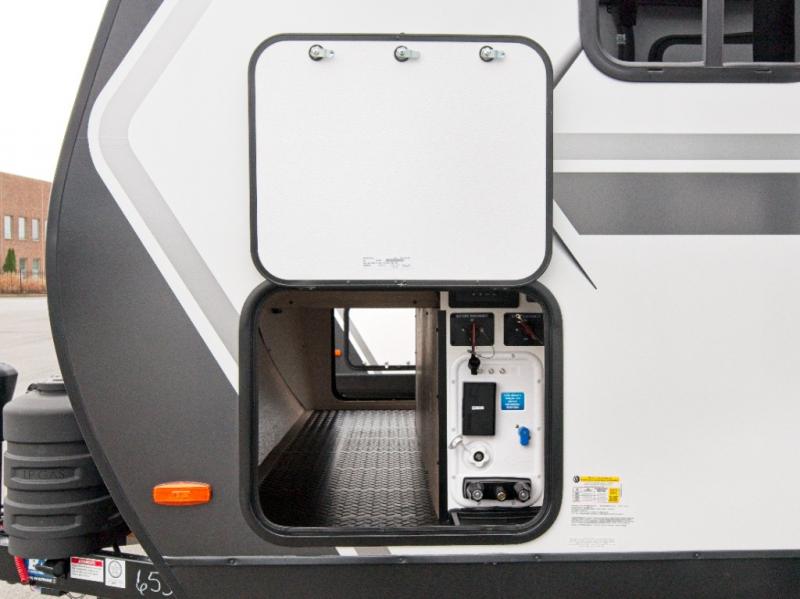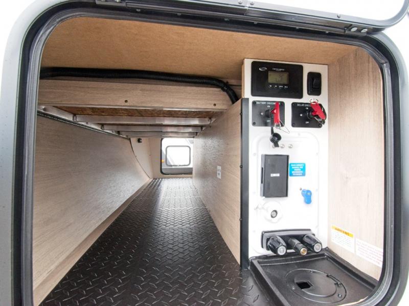 Enjoy the outdoors with the electric awning and LED lights, and rely on the durable Tuff-Ply pass-thru flooring. The XLS Solar Package includes a 180W roof-mounted solar panel, a 40 Amp charge controller, a 12V 10 cu. ft. refrigerator, and roof-mounted quick connect plugs, making off-grid adventures a breeze.