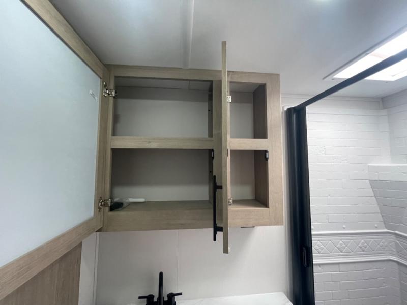 Perfect for small families or couples who love to bring guests, this model provides ample sleeping space, a private rear bathroom, and a fully equipped kitchen. The Murphy bed creates a versatile front living space while the solar package lets you enjoy off-grid camping right out of the box.
