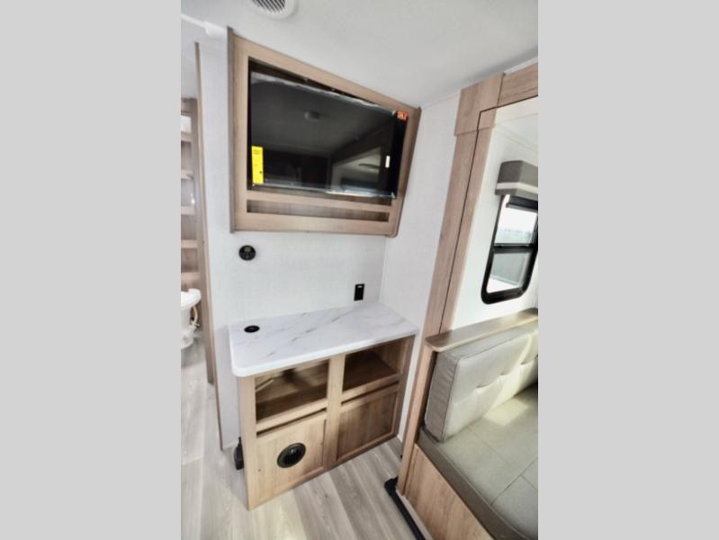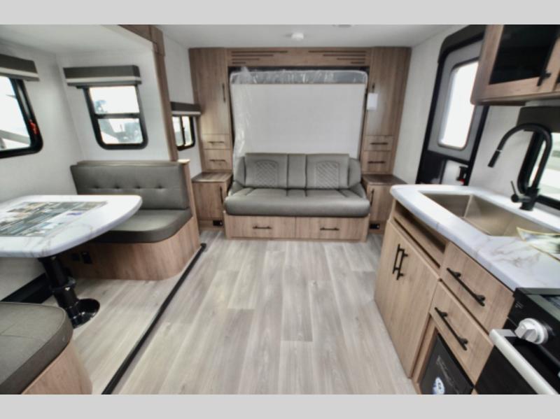 - Versatile Living Area: The innovative Murphy bed and dinette slide make the most of the compact interior, providing plenty of room for family activities or relaxing indoors on rainy days. You can easily switch between configurations to suit your needs—whether it’s daytime lounging or nighttime sleeping.