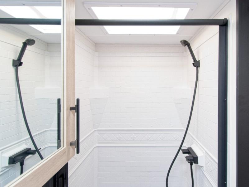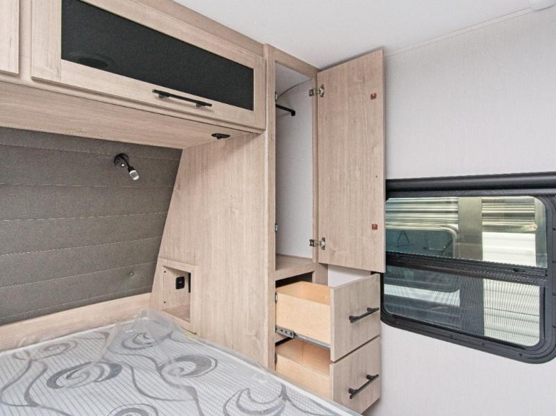 The Tuff-Ply pass-through flooring withstands wear and tear from outdoor adventures, and the designated heat duct to the subfloor and residential ductless heating system keep you warm even in colder conditions. For added convenience, the XLS Solar Package includes a 180W roof-mounted solar panel, 40 Amp charge controller, and 12V 10 cu. ft. refrigerator—perfect for off-grid living.