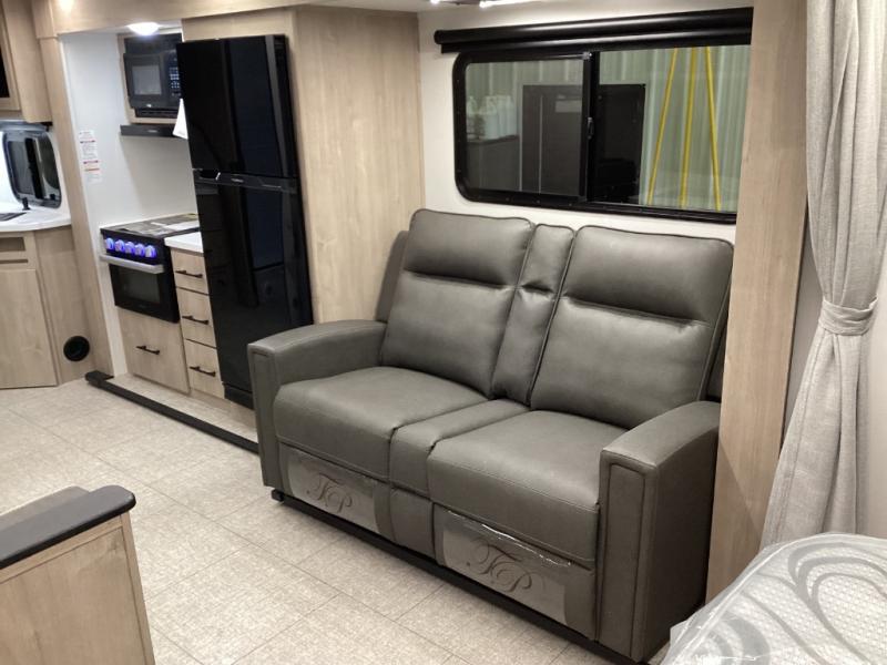 Cozy and Functional Living Space: Relax in the plush theater seating, ideal for unwinding after a day of exploring. The booth dinette is perfect for enjoying meals, playing games, or planning your next adventure. Enjoy your downtime with the LED HDTV for movie nights or simply put your feet up and savor a cup of coffee.