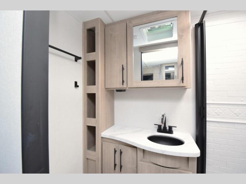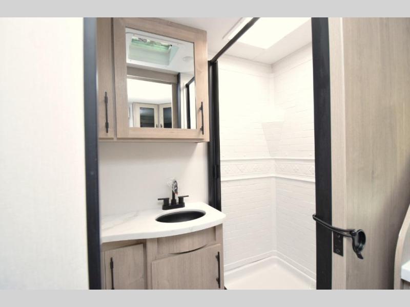 Enjoy a roomy living area with theatre seating or booth dinette, a private front queen bed, and a rear corner bath that delivers all the space and comfort you need for extended stays.