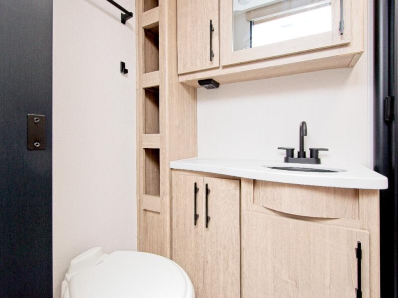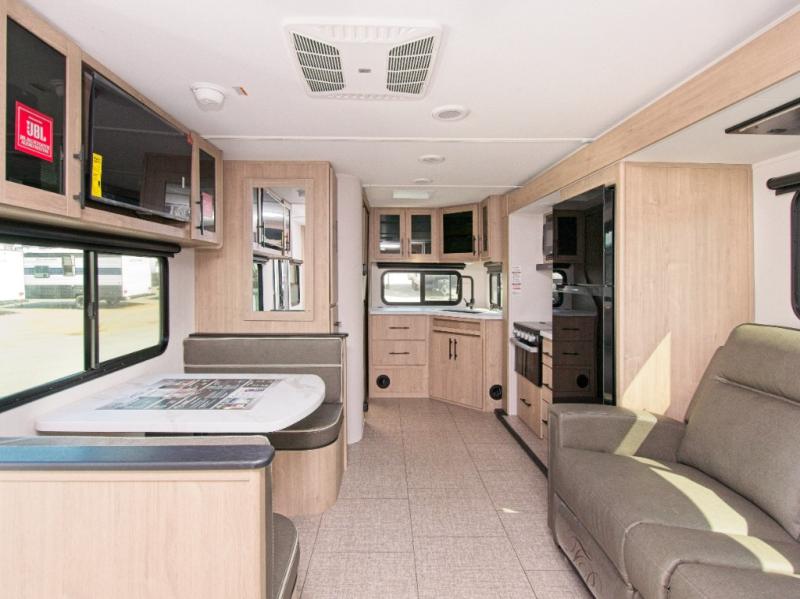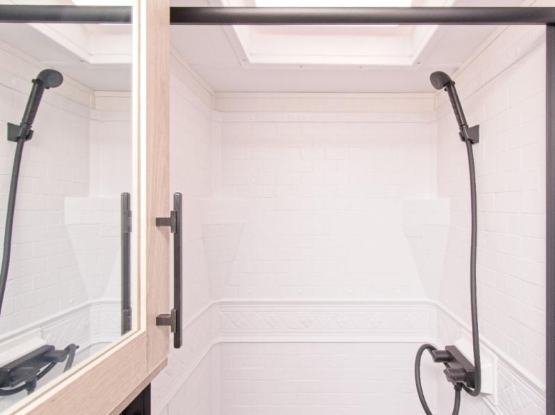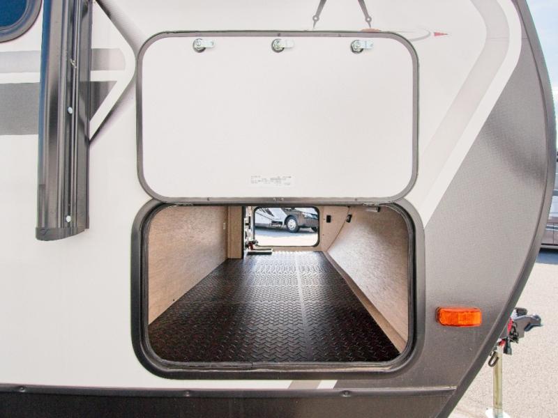 Stay comfortable with the designated heat duct to the subfloor and residential ductless heating system. For outdoor fun, the electric awning with LED lights keeps you protected, and the Tuff-Ply pass-thru flooring withstands your adventures. The XLS Solar Package includes a 180W roof-mounted solar panel, a 40 Amp charge controller, a 12V 10 cu. ft. refrigerator, and roof-mounted quick connect plugs.